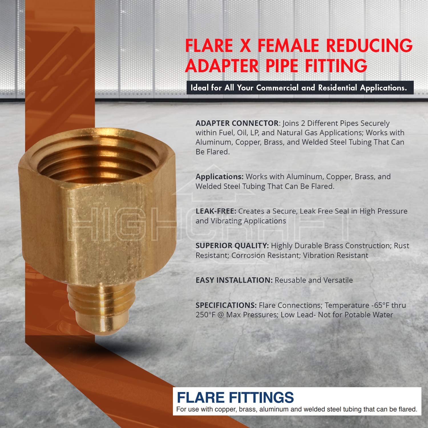 highcraft G46S-3834 Flare x Female Reducing Adapter Pipe Fitting 3/8" O.D. x 3/4 - Diamond Home USA