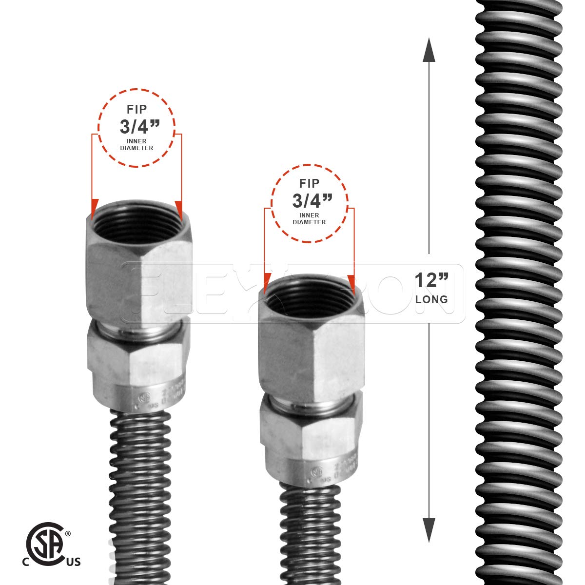 Highcraft GUHD-TT12-12P Gas Line Hose 5/8" O.D. x 12" Length