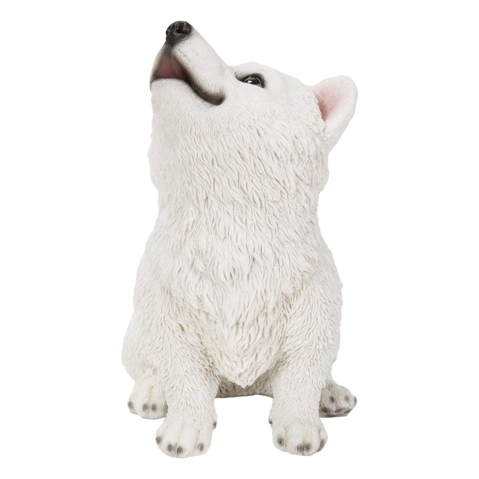 Howling American Eskimo Puppy Statue White Polyresin - Diamond Home USA