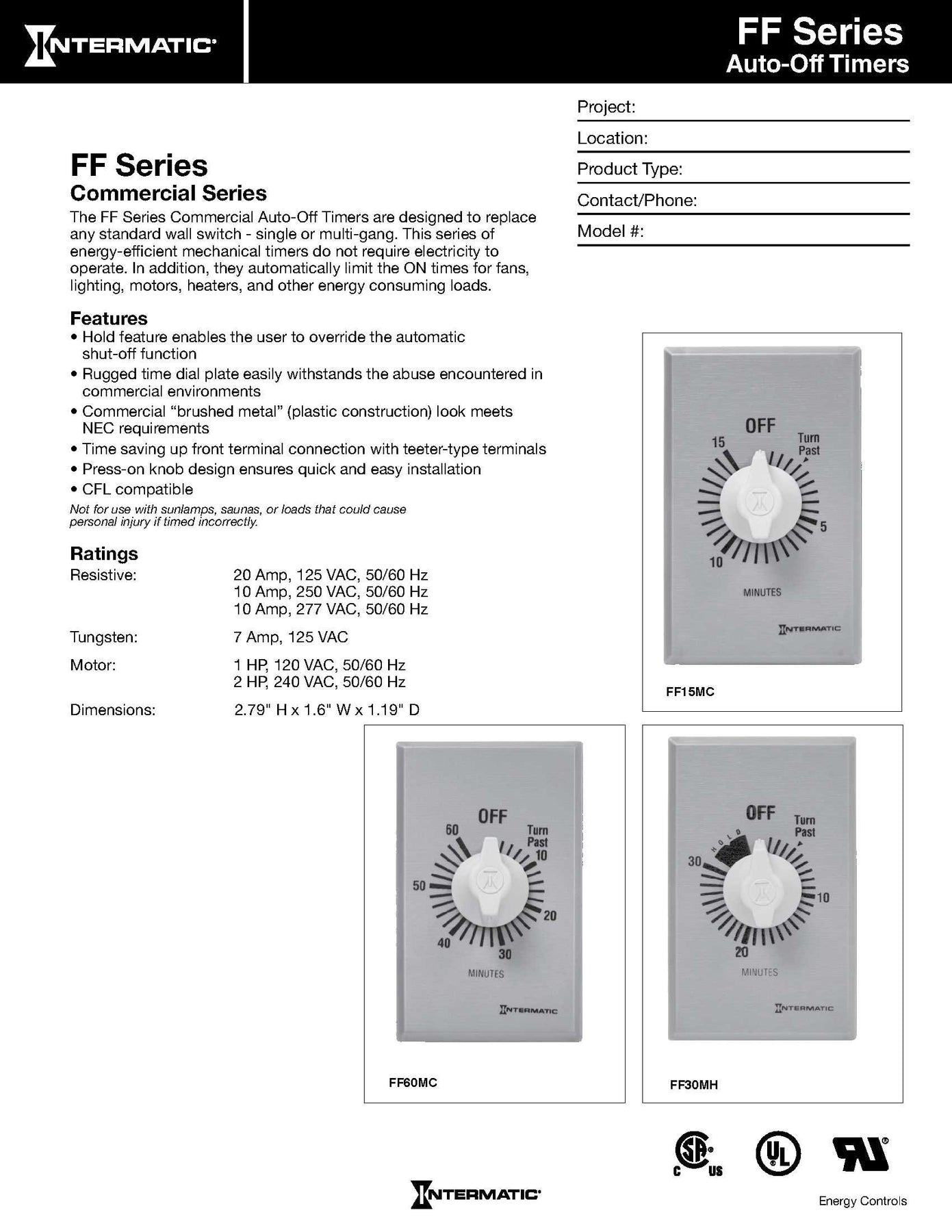 Intermatic FF32H 2-Hour Spring Loaded Wall Timer SMALL Brushed Metal