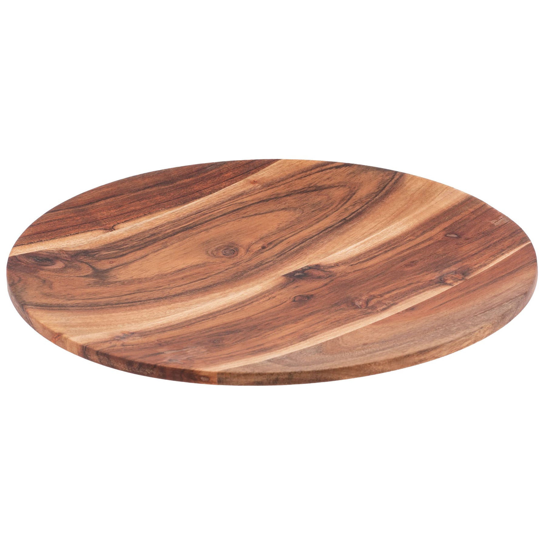 This natural wood charger made from acacia wood and measuring 13" in diameter creates a gorgeous addition to the table. Thoughtfully created with a deep tone and each charger boasting of unique knots and grain, these wood chargers are the perfect piece to add to your table setting. Perfect for both indoor and outdoor use. Due to the artisan nature of this product each item will be uniquely different.
