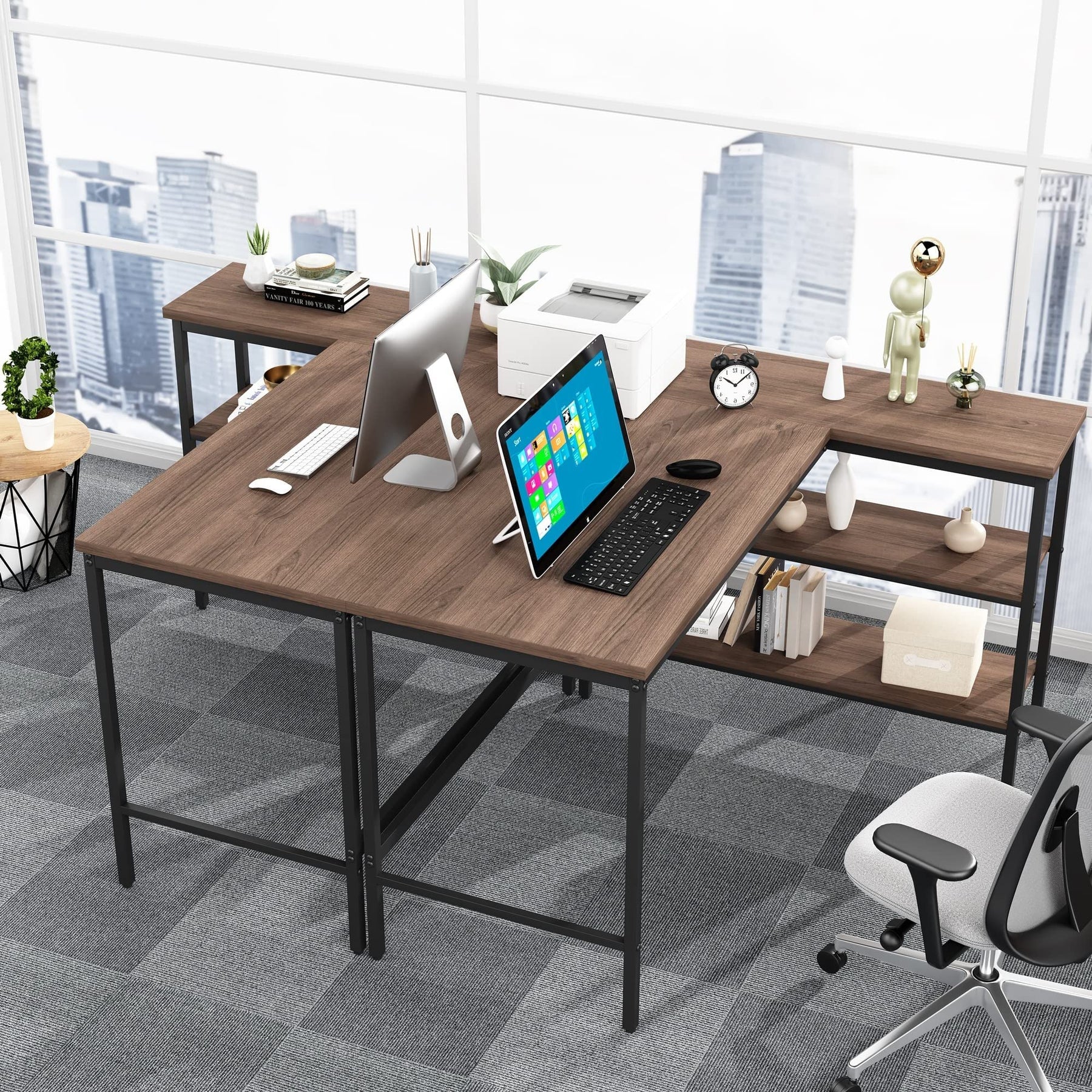 L Shaped Desk with Removable Storage Shelves Industrial Reversible L-Shaped