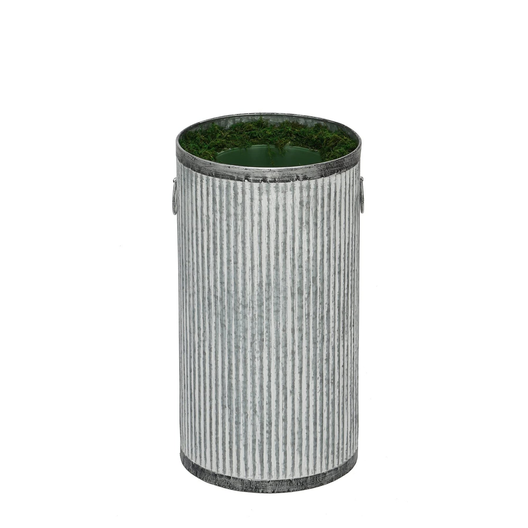 Large Ribbed Metal Planter Grey Farmhouse Distressed