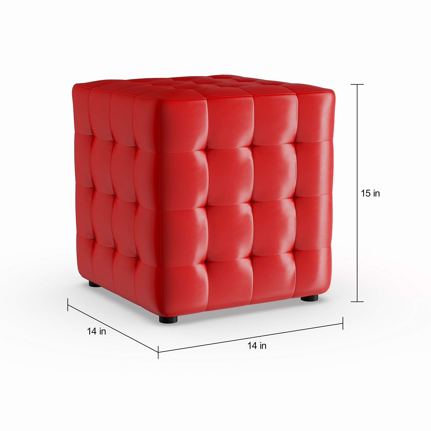 Las Red Cube Ottoman (Set Of 2) Modern Contemporary Solid Square Faux Leather Wood Included | Set of 2. Red faux-leather upholstery. Solid wood frame. Button tufting. Black plastic feet. Lightweight and hollow. Style : Modern & Contemporary. Material : Faux Leather, Wood. Type : Storage Cube. Chair type : Chair & Ottoman Sets. Bench material : Leather, Wood. Print : Solid. Assembly : Assembled. Club o extra reward : Club O Extra Rewards Store.Product Color: Red. Product features : Ottoman Included. Shape : Square.Size of Product: 14.75 inches high x 14.25 inches wide x 14 | Measures 14.75 inches high x 14.25 inches wide x 14.25 inches long.