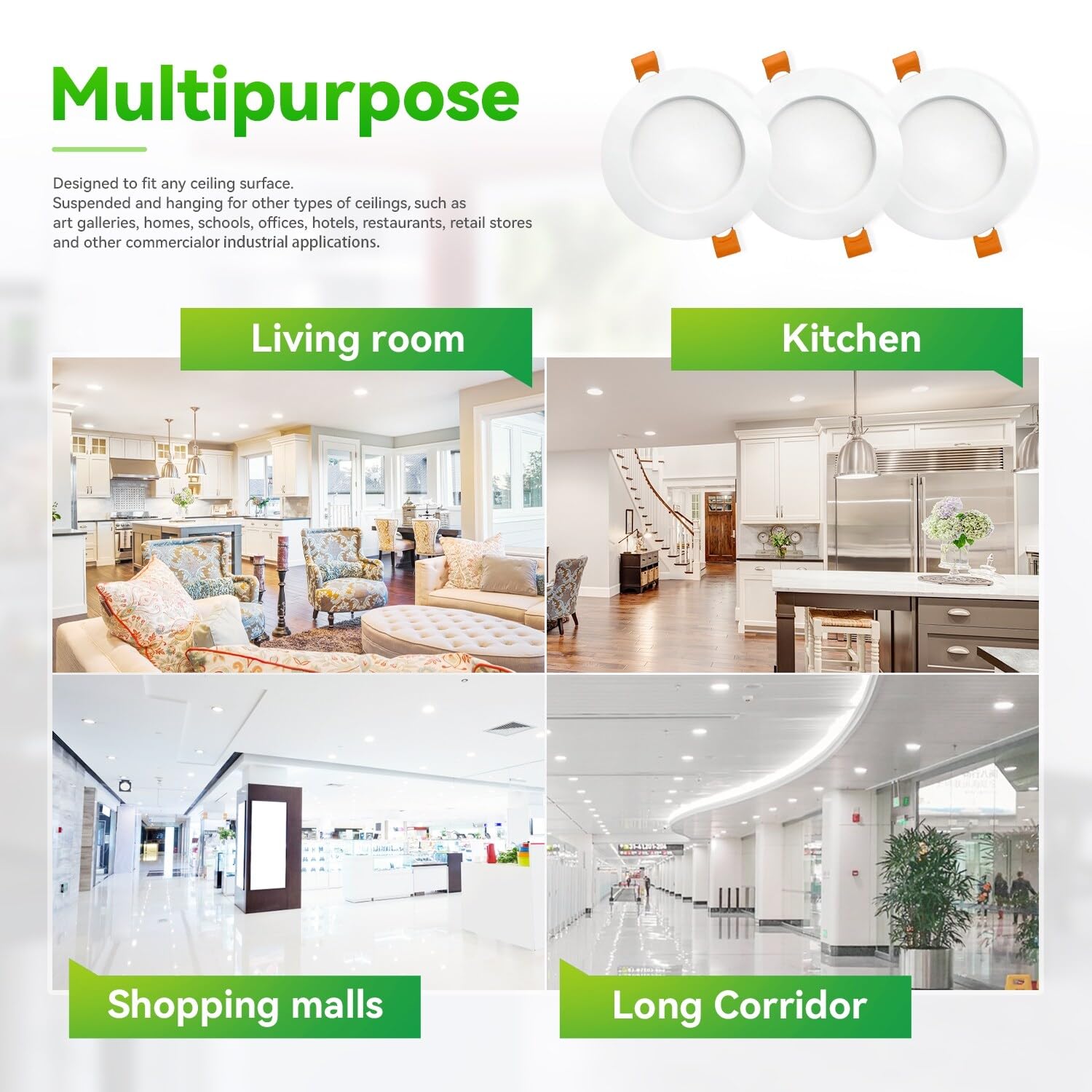 Led 6" Recessed Light with Dimmable 5 Color Temperature Selectable