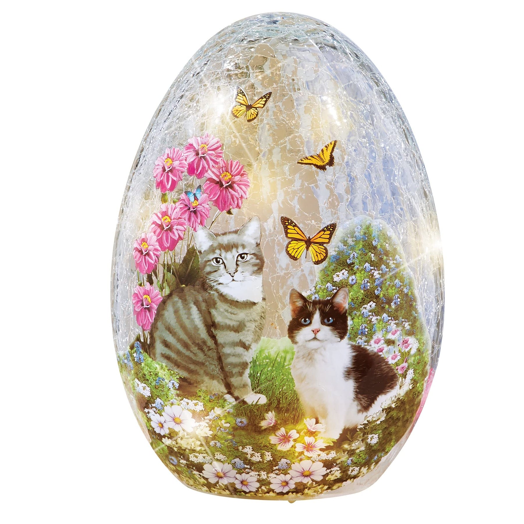 Led Lighted Garden Cats Glass Egg Lamp 5.88 X 5.31