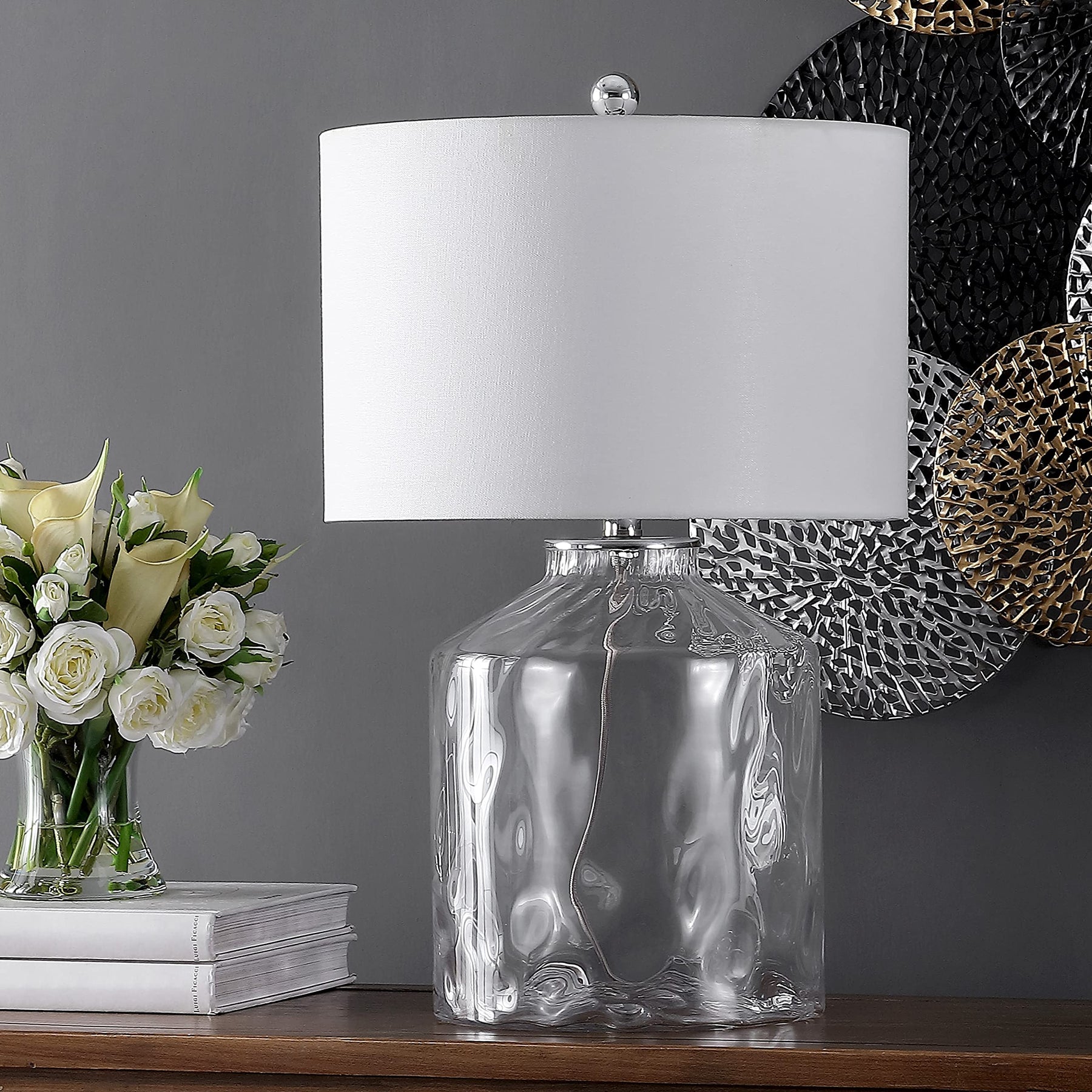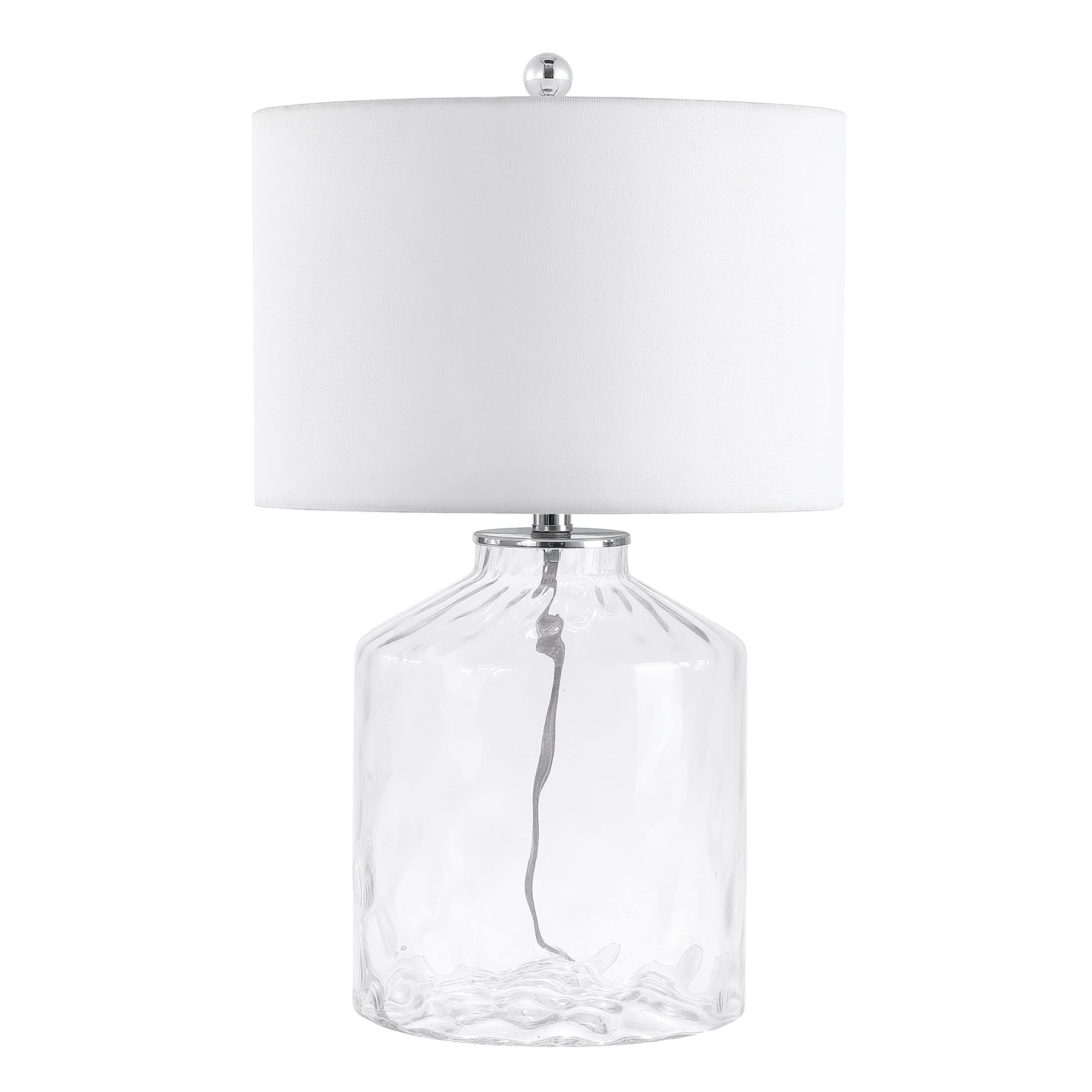 Lighting 24.5" Table Lamp 13" W X D 23" H Clear Modern Contemporary Chrome Bulbs Included | Design/Look : Modern & Contemporary. Finish : Chrome. Shade material : Fabric. Switch type : On-Off Rotary Switch. Base material : Glass. Base shape : Cylinder. Color : Clear. Color temperature : Soft White 3000K - 4000K, Warm White 2700K - 3000K. Exact bulb wattage : 9. Finish enhancements : Satin. Light bulb type : LED Integrated. Bulbs Included. Shade shape : Drum. Table lamp type : Standard. Product Size: 13.0 In. W X 23.0 In. H X 13.0 In | Lamp height : 21 to 24 Inches.