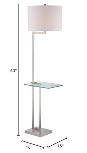 Lite Source Rudko Floor Lamp with Tray Table | Polished Steel Metal Body with Clear Glass Table Top and Off-White Fabric Shade | Color Temperature: 2700K | PS/White Fabric Shade | An excellent value that can be used in any home