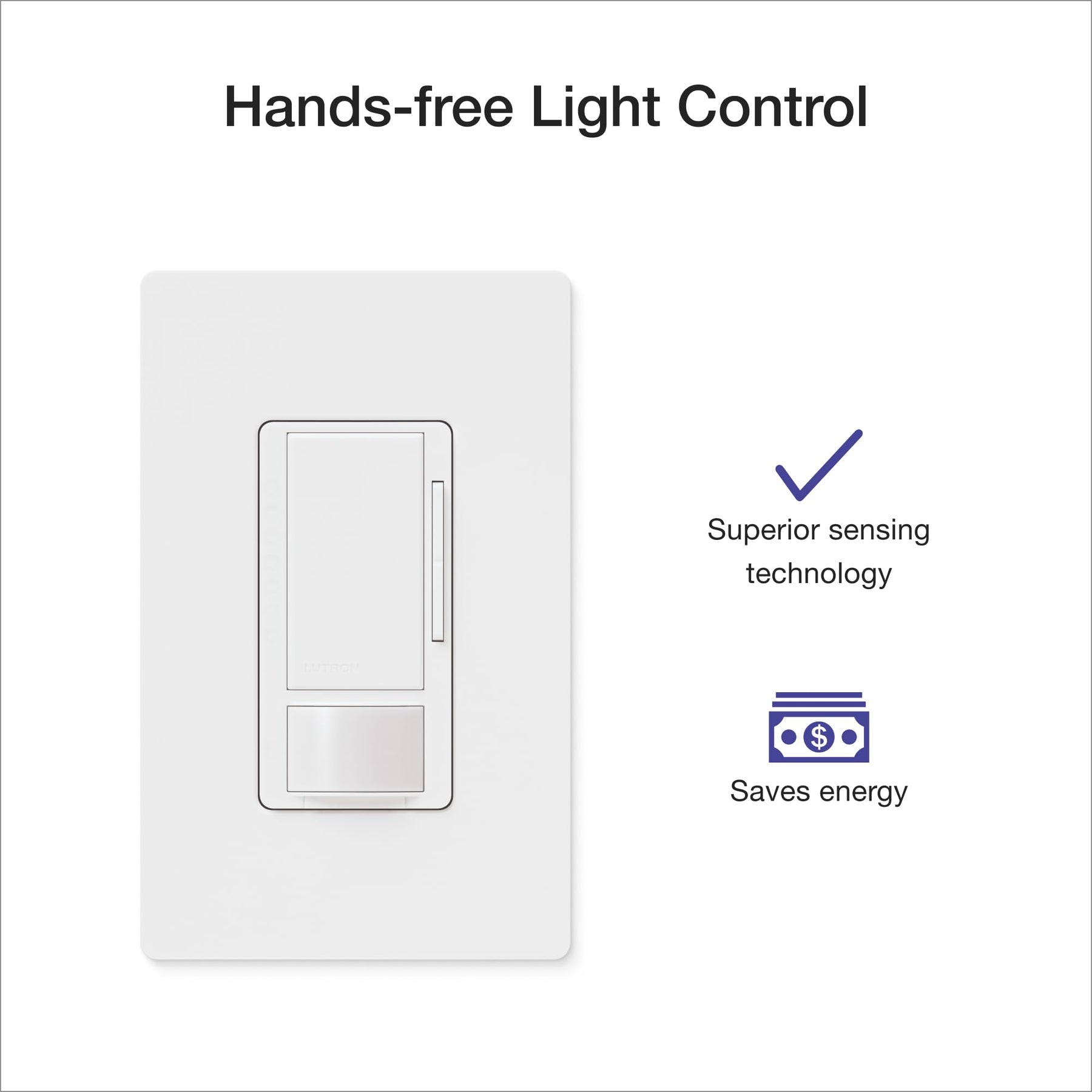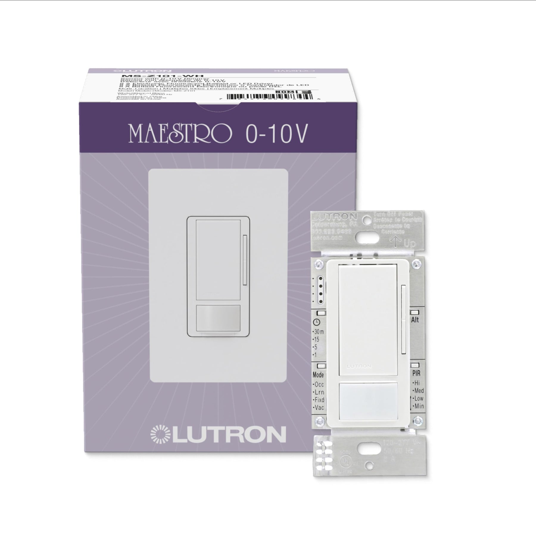 Includes (1) maestro 0-10-Volt motion sensor/dimmer switch | Motion sensor dimmer switch automatically turns on the lights when you enter the room and off when you leave; 180-degree sensor field of view (900 sq ft major motion & 400 sq ft minor motion coverage) | Features Lutron XCT Technology for fine motion detection, which is 2-3x better at picking up motion than other manufacturers | Smart ambient light detection senses daylight in the room and learns your preferred light level over time, so your lights stay off if it already bright | Customize both dimmer and sensor functions for a personalized experience adjust the sensor timeout, the dimmer low-end trim and sensor sensitivity | Single-pole/multi-location switching with Lutron maestro companion switches (ma-as) compatible with an existing mechanical 3-way switch | Can be programmed as a vacancy-only sensor to meet title 24 requirements | Rated for all drivers; up to 8A LED/4.4A Fan (1/6 HP) with a 50mA max sink current neutral optional | Available in 10+ colors pairs perfectly with Lutron claro wallplates for consistent color matching (sold separately)