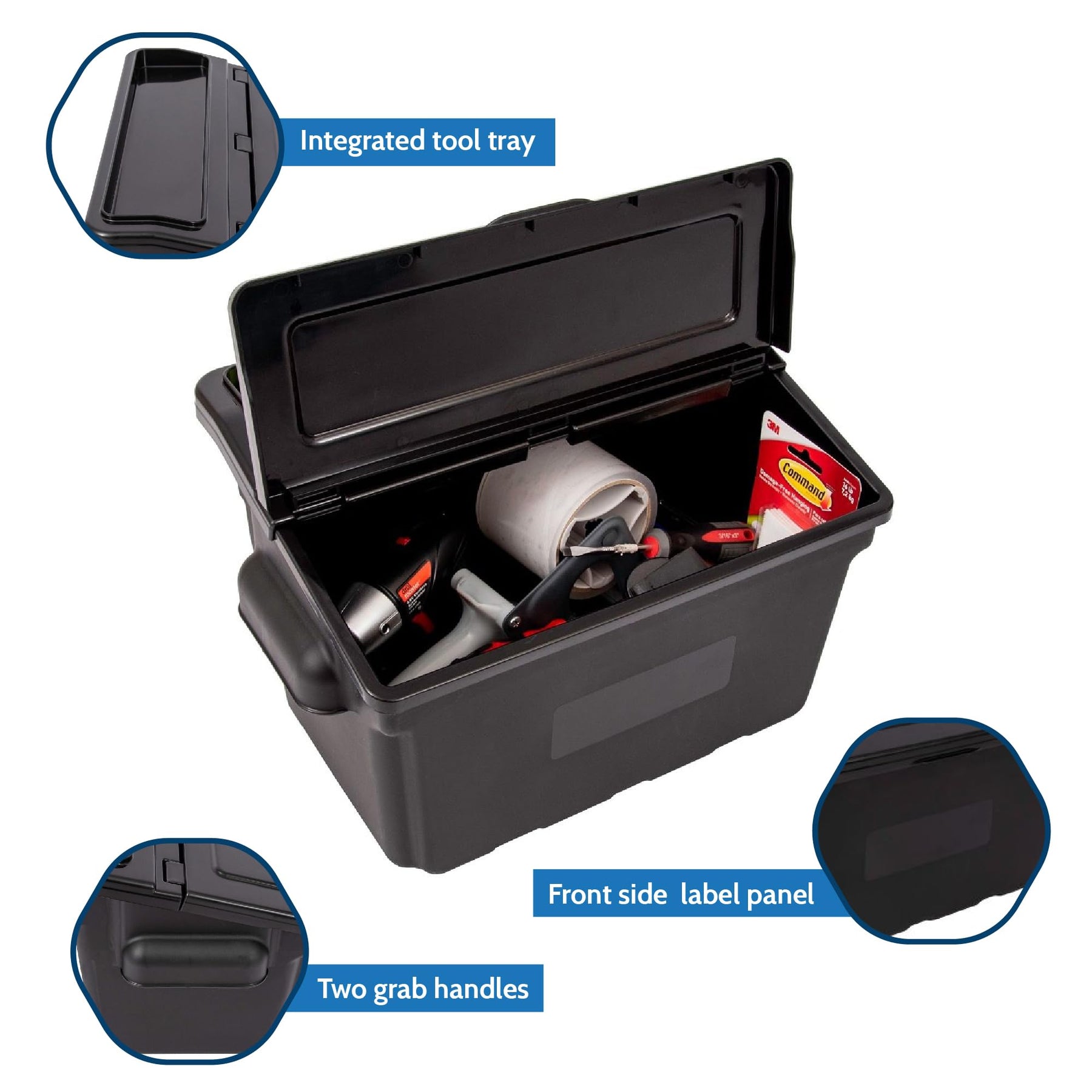 Features of these service cart bins include a 25 lb. weight capacity a hinged snap-on lid with integrated tool tray plus molded-in grab handles for easy carrying. Sturdy polyp