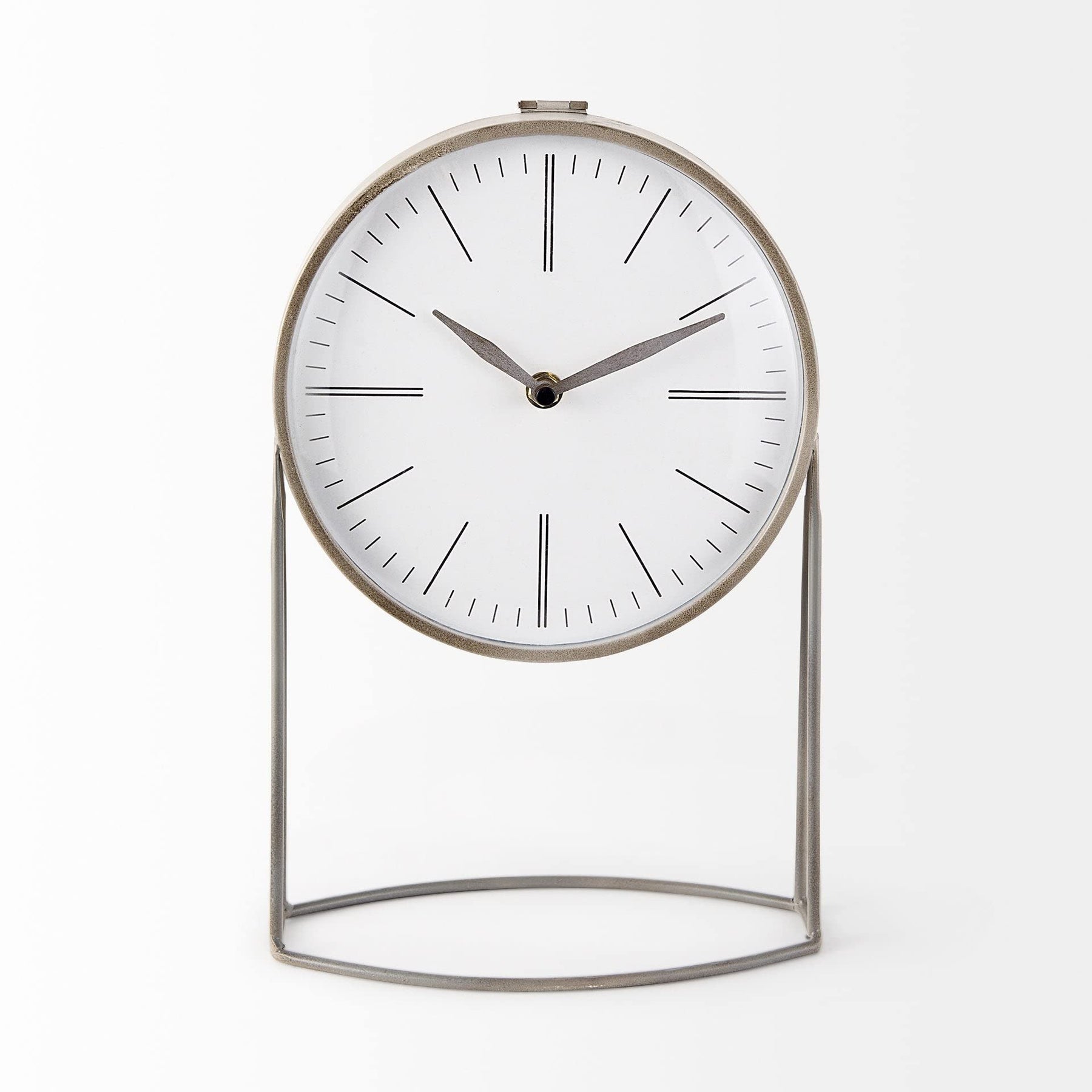Matte Grey Metal Table Clock 7.8" w X 4.7" d