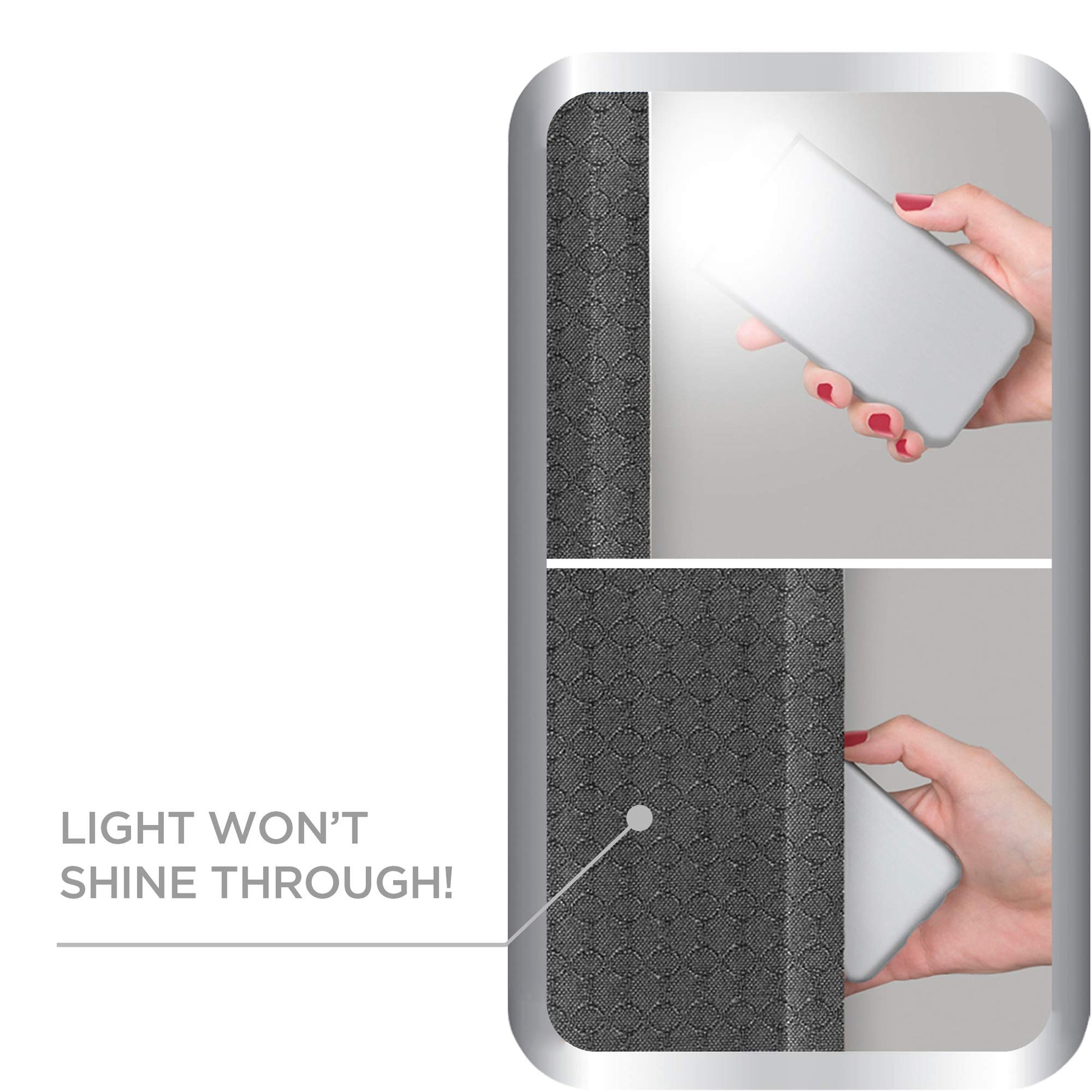 ELIMINATES 100 PERCENT OF LIGHT - Blocks 100 Percent of light. Great for daytime sleepers, children's rooms, and nurseries | SAVES ENERGY - Saves on energy costs keeping your room cooler in the summer and warmer in the winter | REDUCES NOISE - Reduces noise so you can sleep and rest better in a quiet, peaceful environment | DESIGN - Features a jacquard geometric pattern on solid fabric. Rod pocket construction fits standard window openings | 1 PANEL PER PACKAGE - We recommend using two panels for a standard window opening
