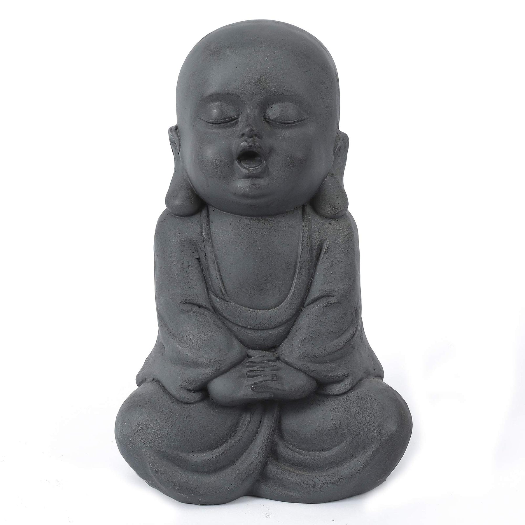 Meditating Buddha Garden Statue Grey Oriental Magnesium Oxide Handmade