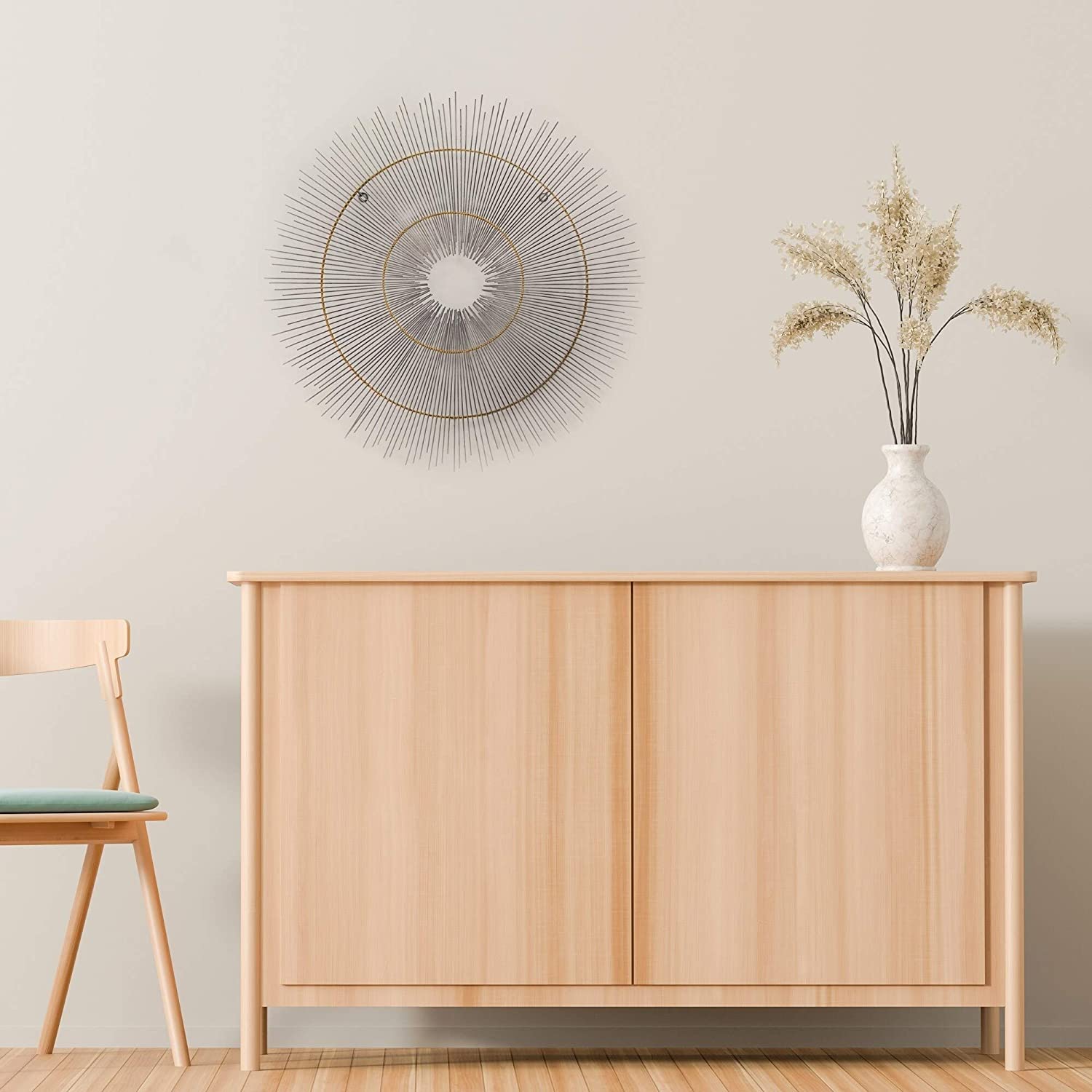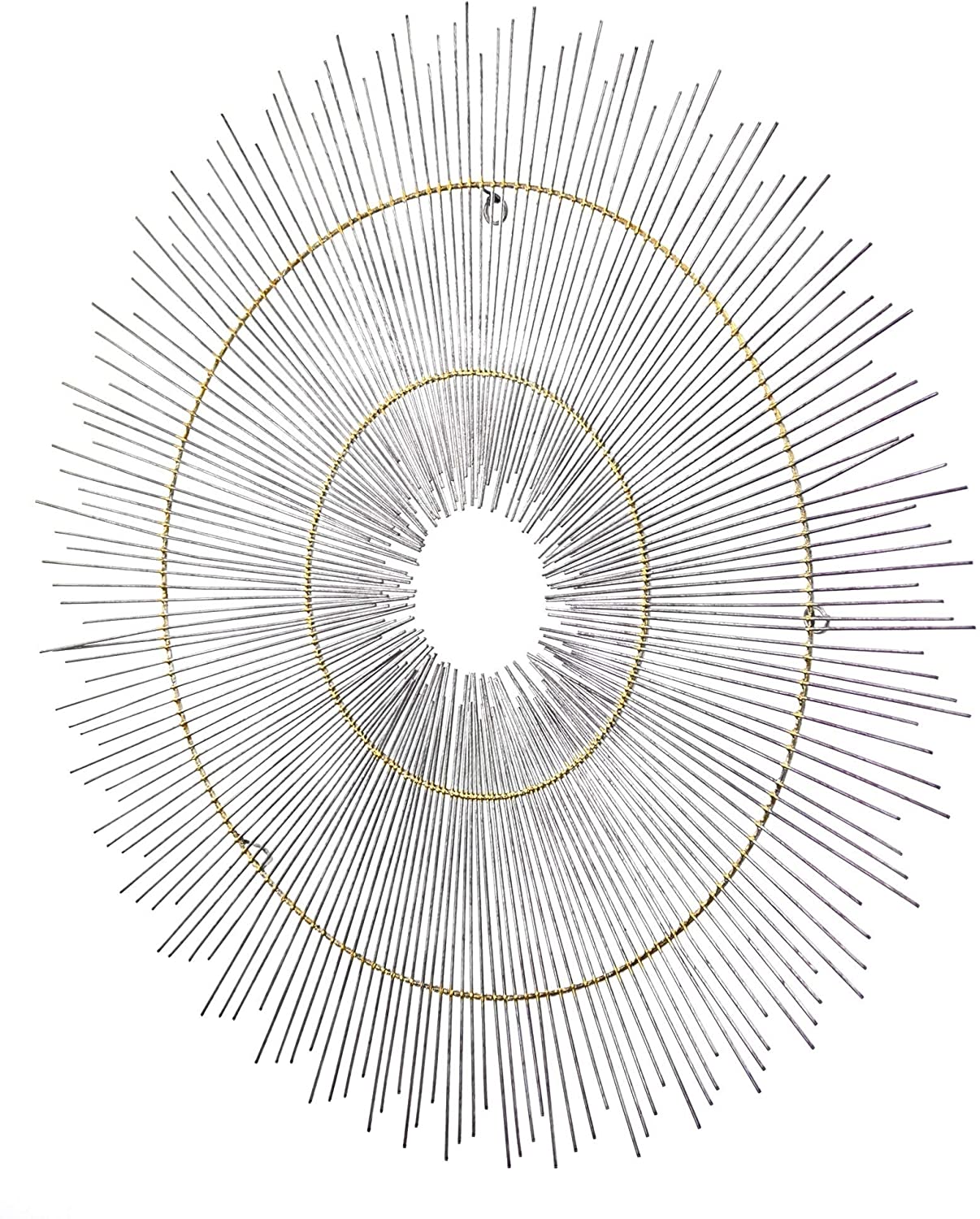 • MODERN WALL ART & DECOR- Freshen up your wall decor with some modern art like this sculptural piece that hints at modernity with its iconic starburst shape that will create a truly unique piece for your home decor needs. SUN/STARBURST DESIGN - This metal sculpture boats the beautiful and iconic sun/starburst design that is made from lightweight metal wires methodically arranged to create such a catchy piece of wall decor. Material : Metal. Accent type : Wall Decor