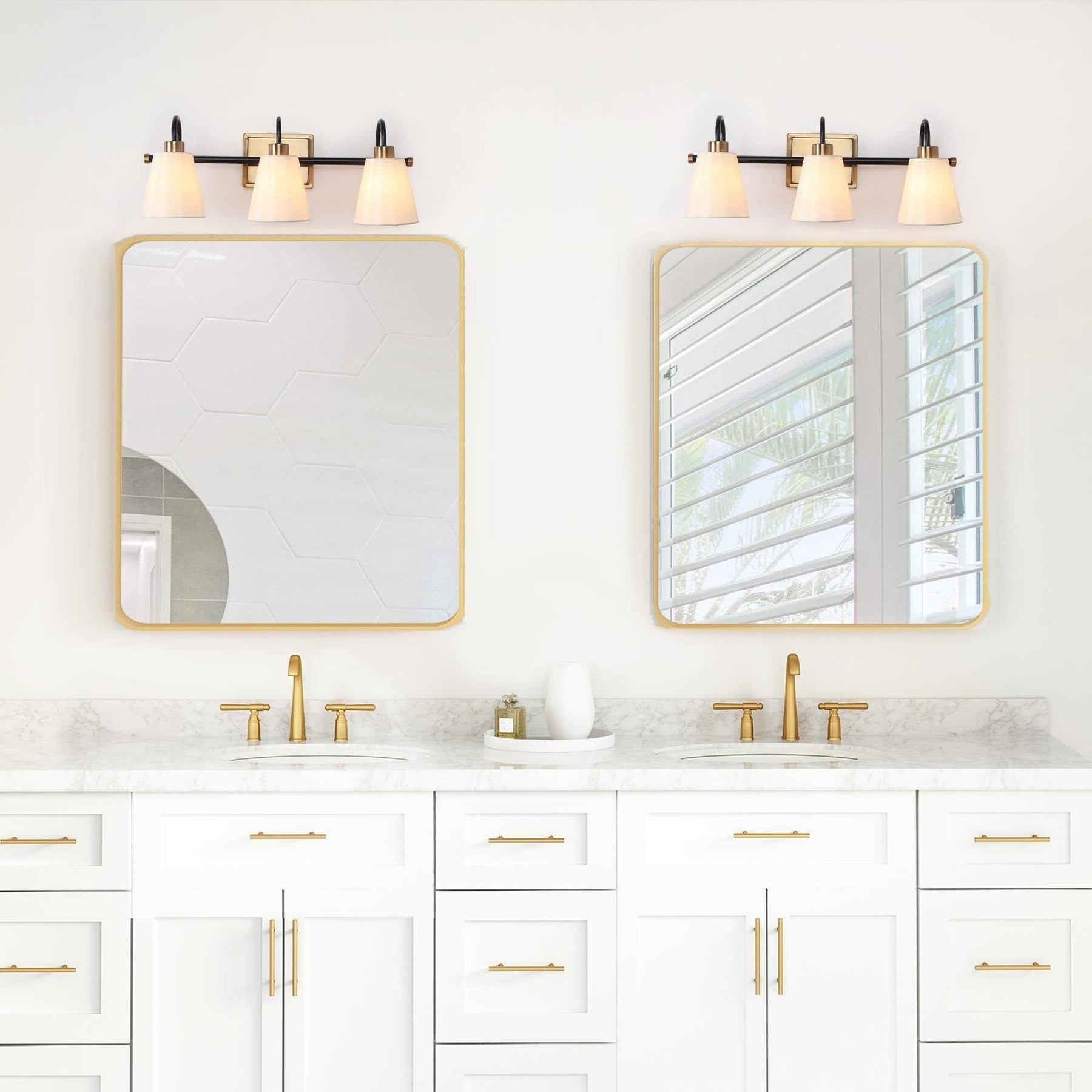 Mid-century Modern 3-light Linear Gold Black Bathroom Vanity Lights L