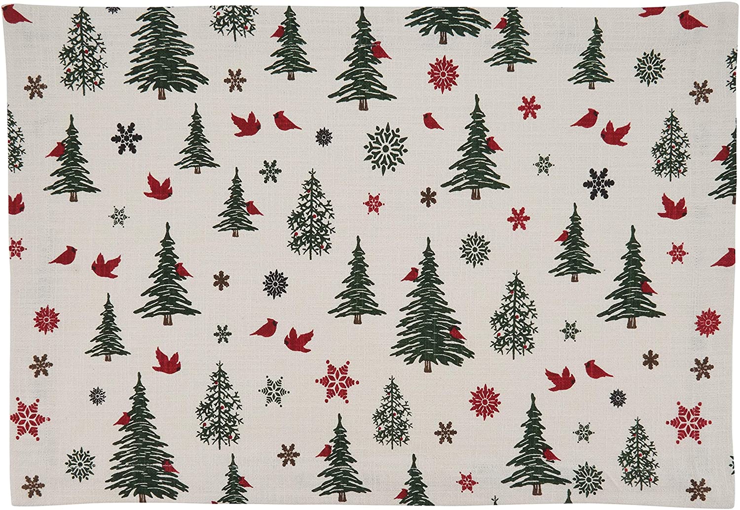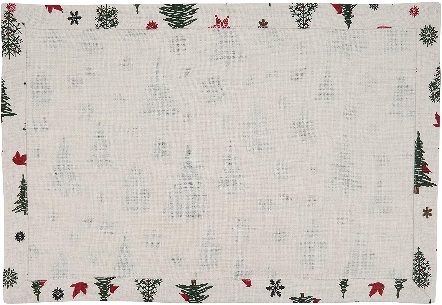 MISC Holiday Placemats Christmas Tree Snowflakes Design Off White Cotton