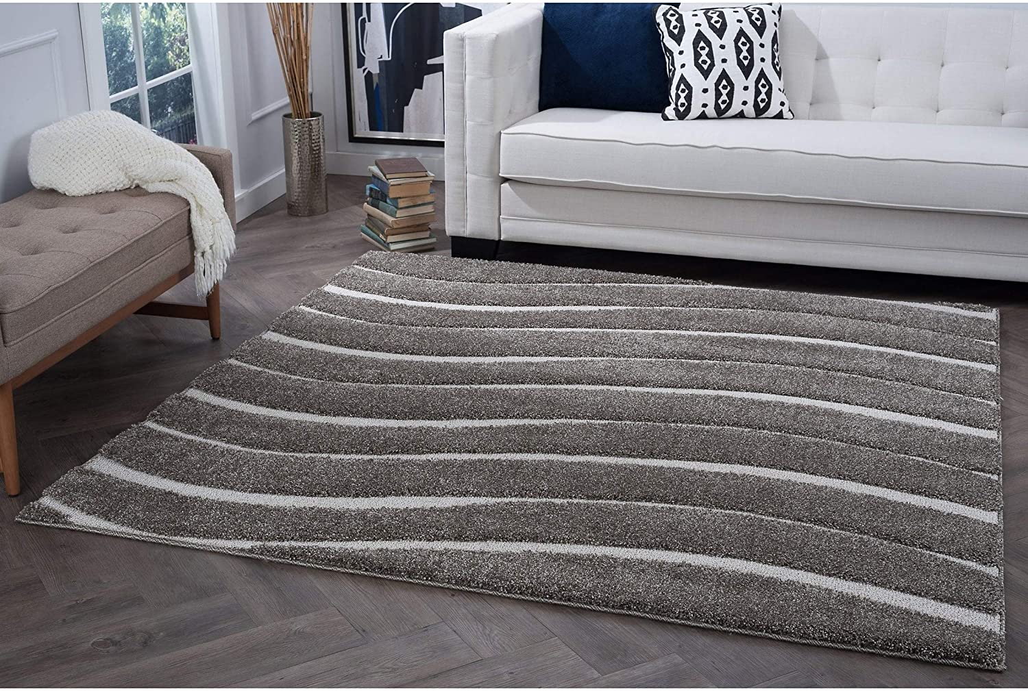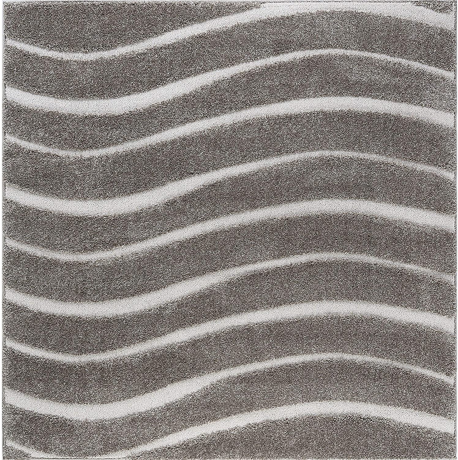 Shag Contemporary Stripe Square Area Rug 3'11 X Grey Chevron