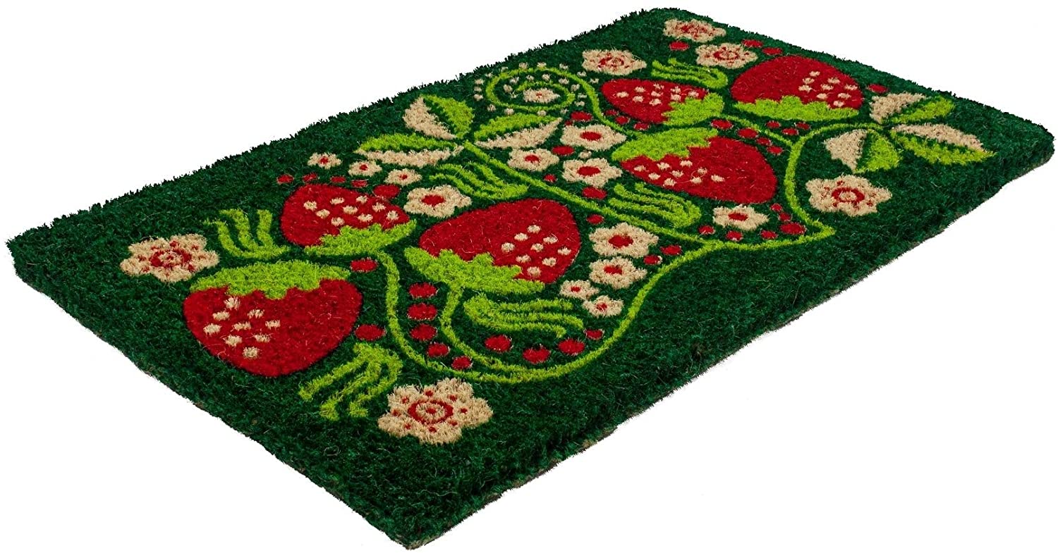 Strawberry Vines Handwoven Coconut Fiber Doormat 18 X 30 Green