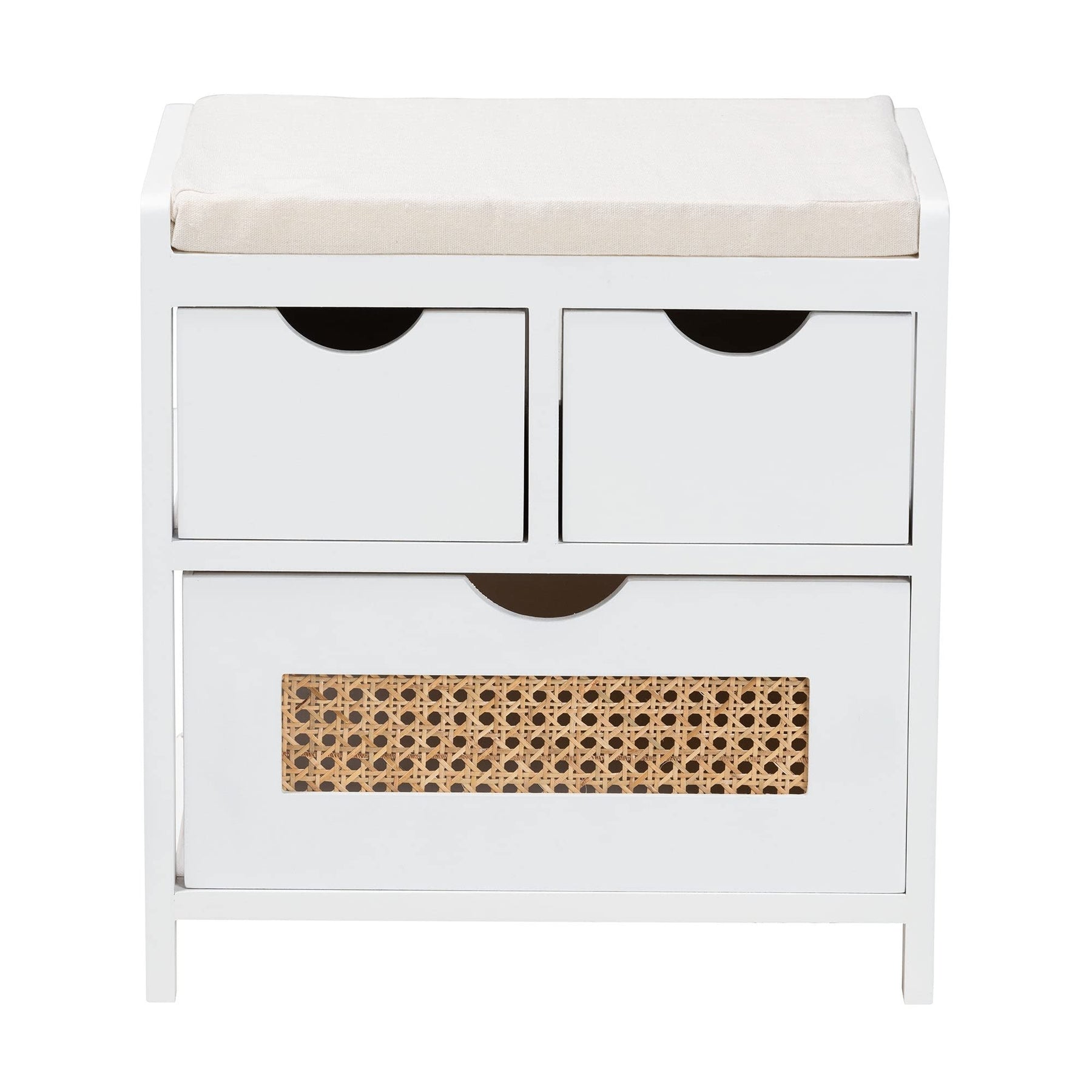 Modern and Contemporary Light Beige Fabric White Finished Wood 3-Drawer