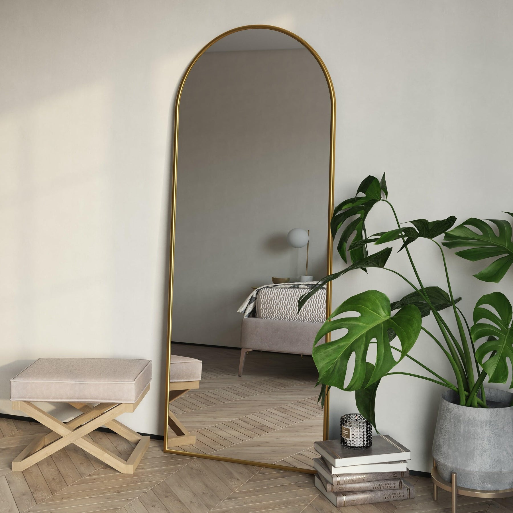 Modern Arch Floor Mirror 70" h X 28" w 2" d Gold Mid-Century Includes Hardware