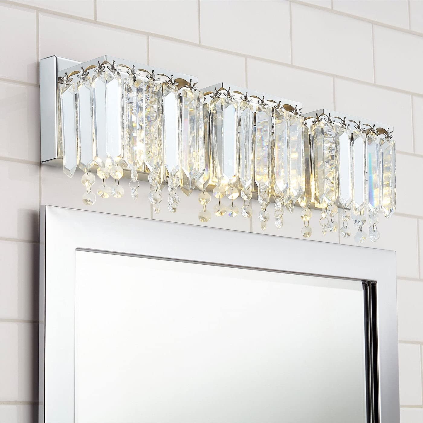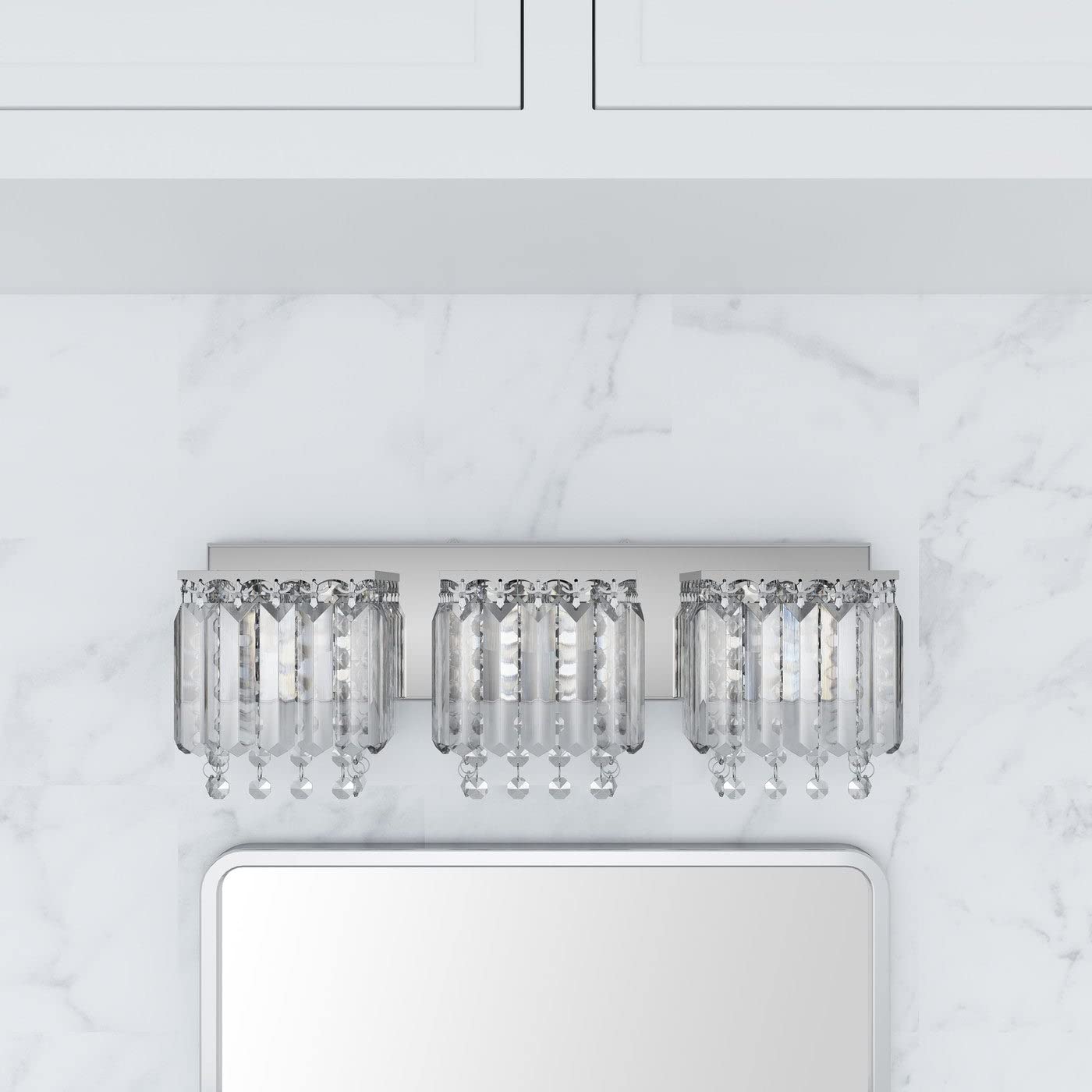 Modern Chrome 3-light Crystal Drops Design Vanity Light Metallic Contemporary