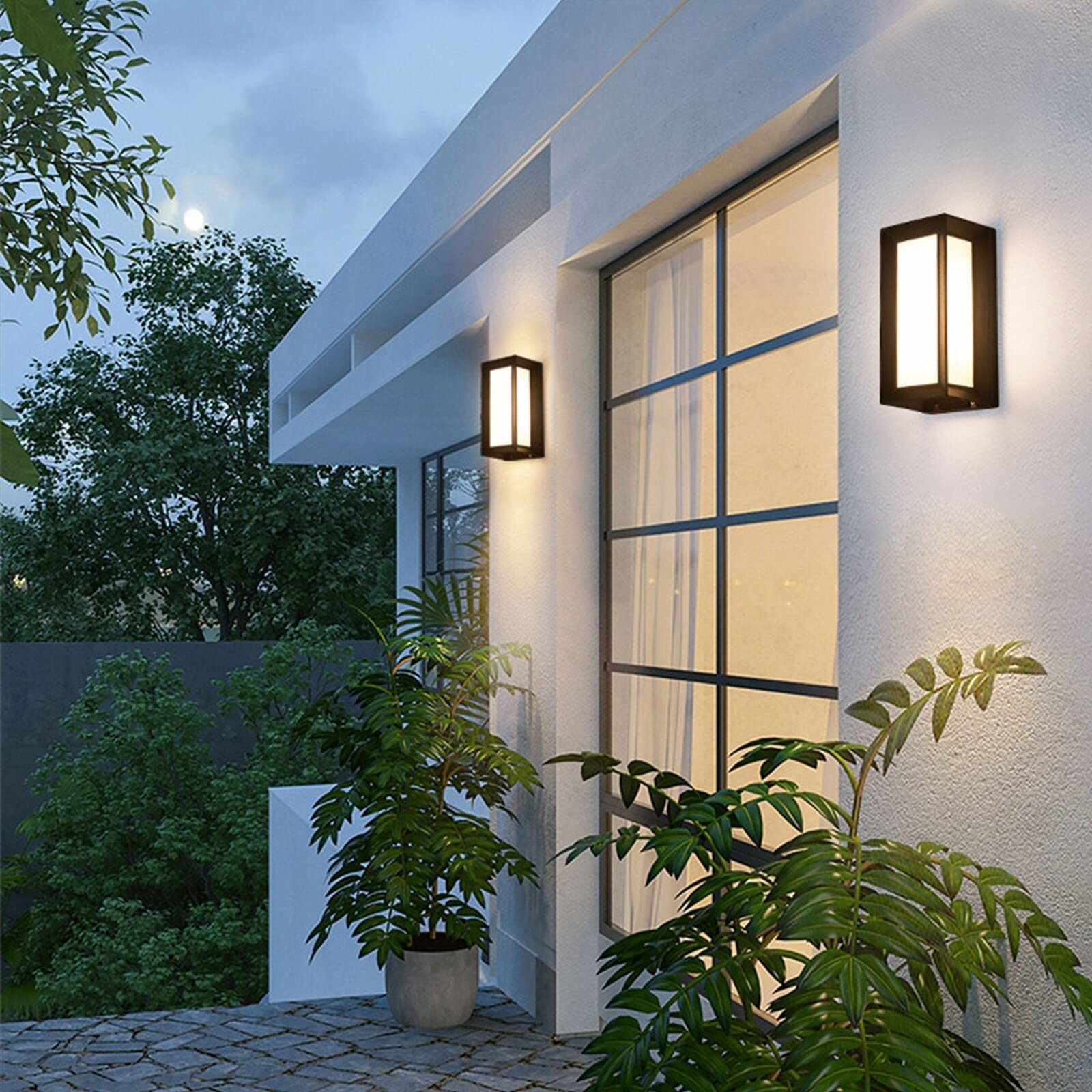 Modern Outdoor Wall Light Sconce Exterior Lighting Fixtures 10.2 X 4.5 4.9 Inch Black Contemporary Acrylic Waterproof | Aluminium Lamp & Acrylic Shade. Exquisite Workmanship. Design/Look : Modern & Contemporary. Material : Acrylic, Aluminum. Finish : Black. Shade material : Acrylic. Assembly : Assembly Required. Color : Black. Finish enhancements : Antiqued. Fixture design : Lantern. Light bulb type : LED Compatible. Light direction : Multi-directional. Power source : Hardwired