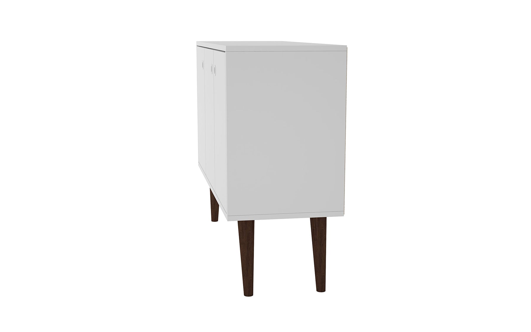 ModHaus Living Mid Century Modern Sideboard TV Stand with e Shelves 2 Doors and Solid Wood Splayed Legs - Includes Pen (White)