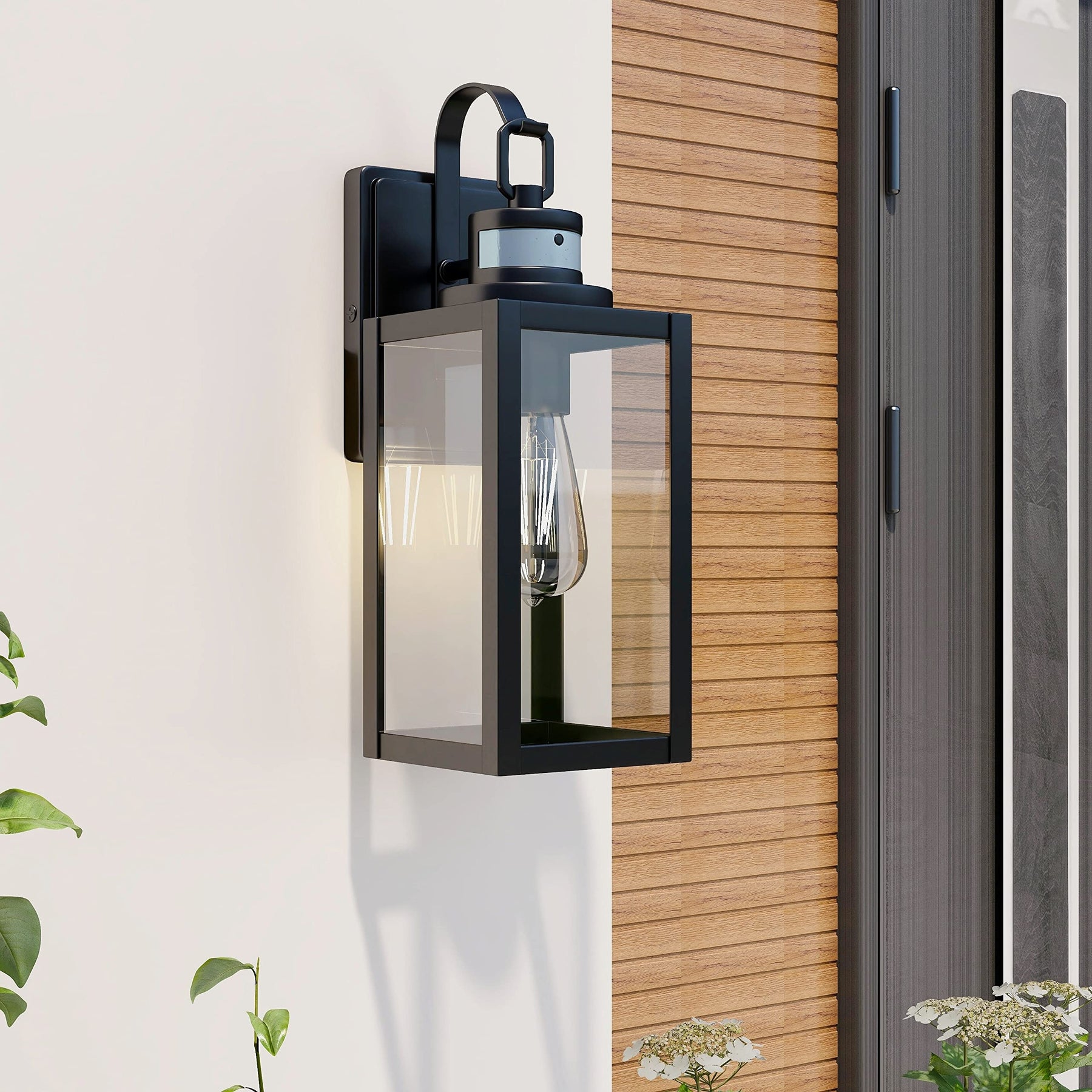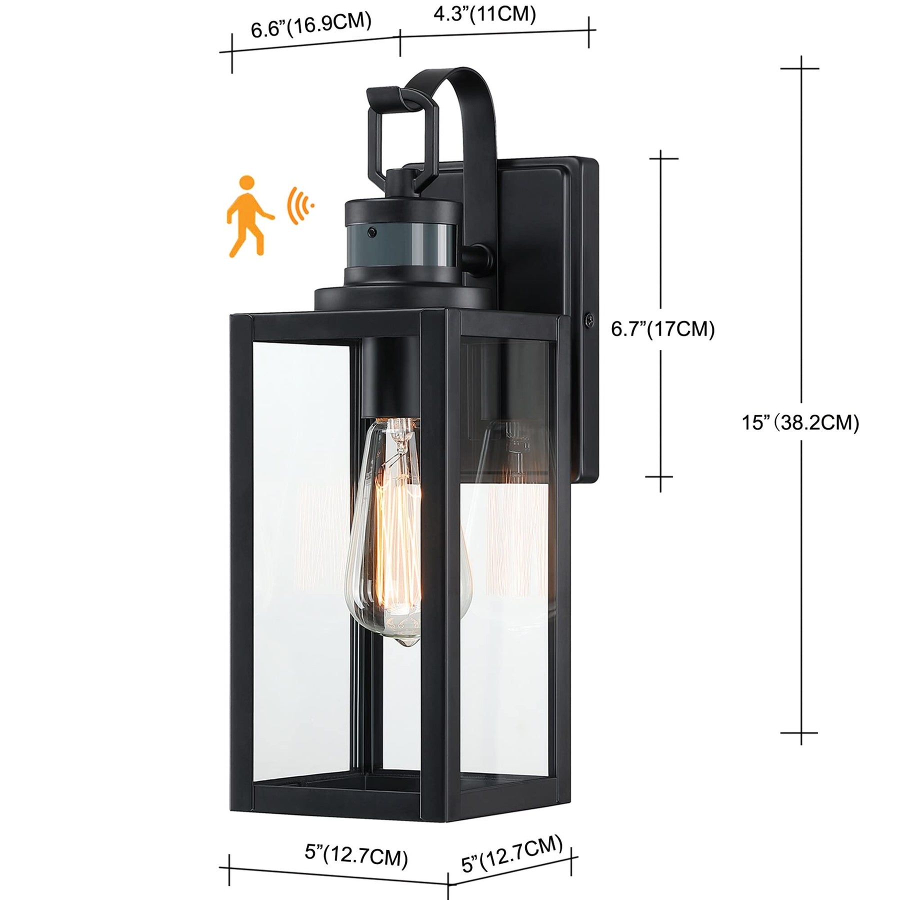 Motion Outdoor Wall Sconce Matte Black Porch Lantern 5" wx6.65