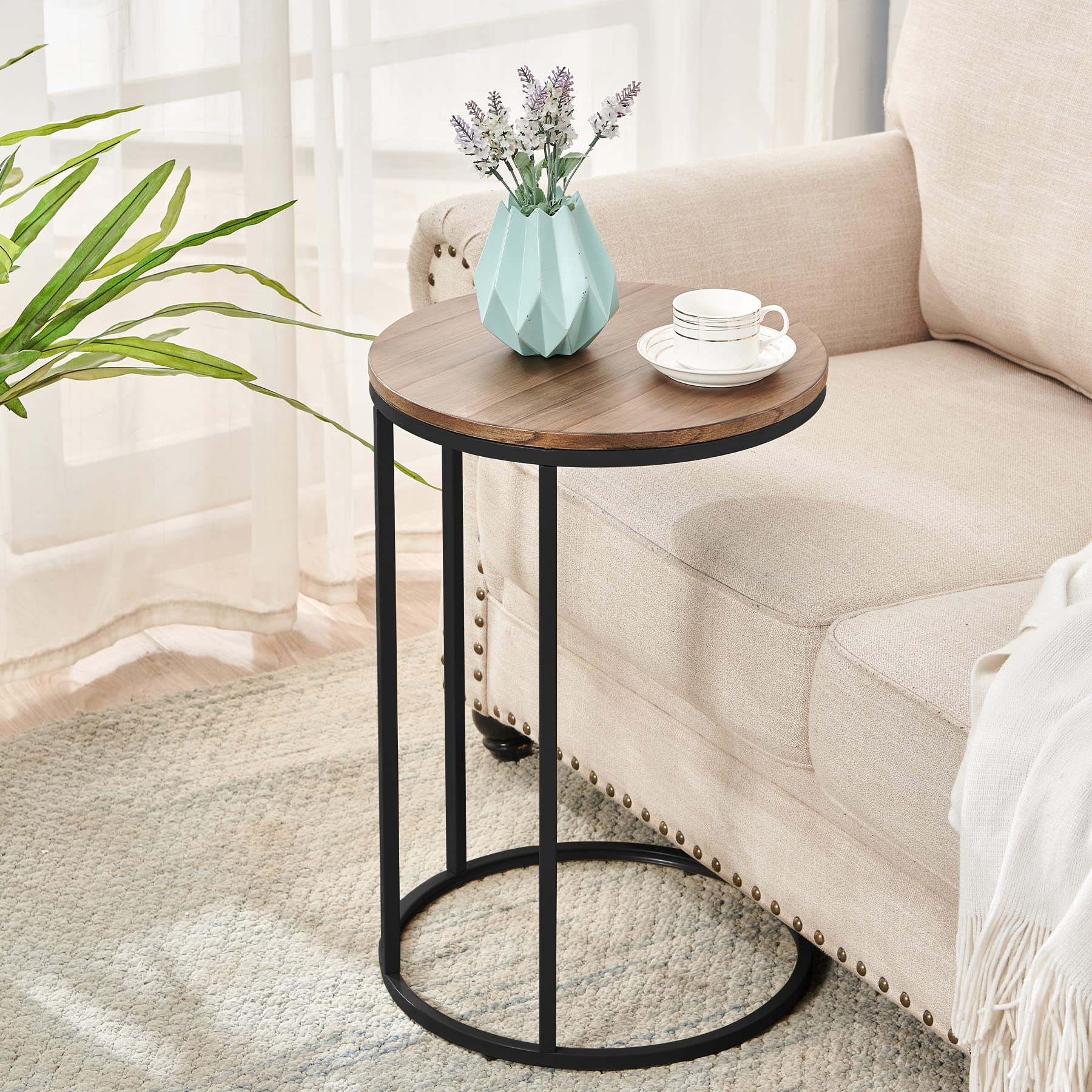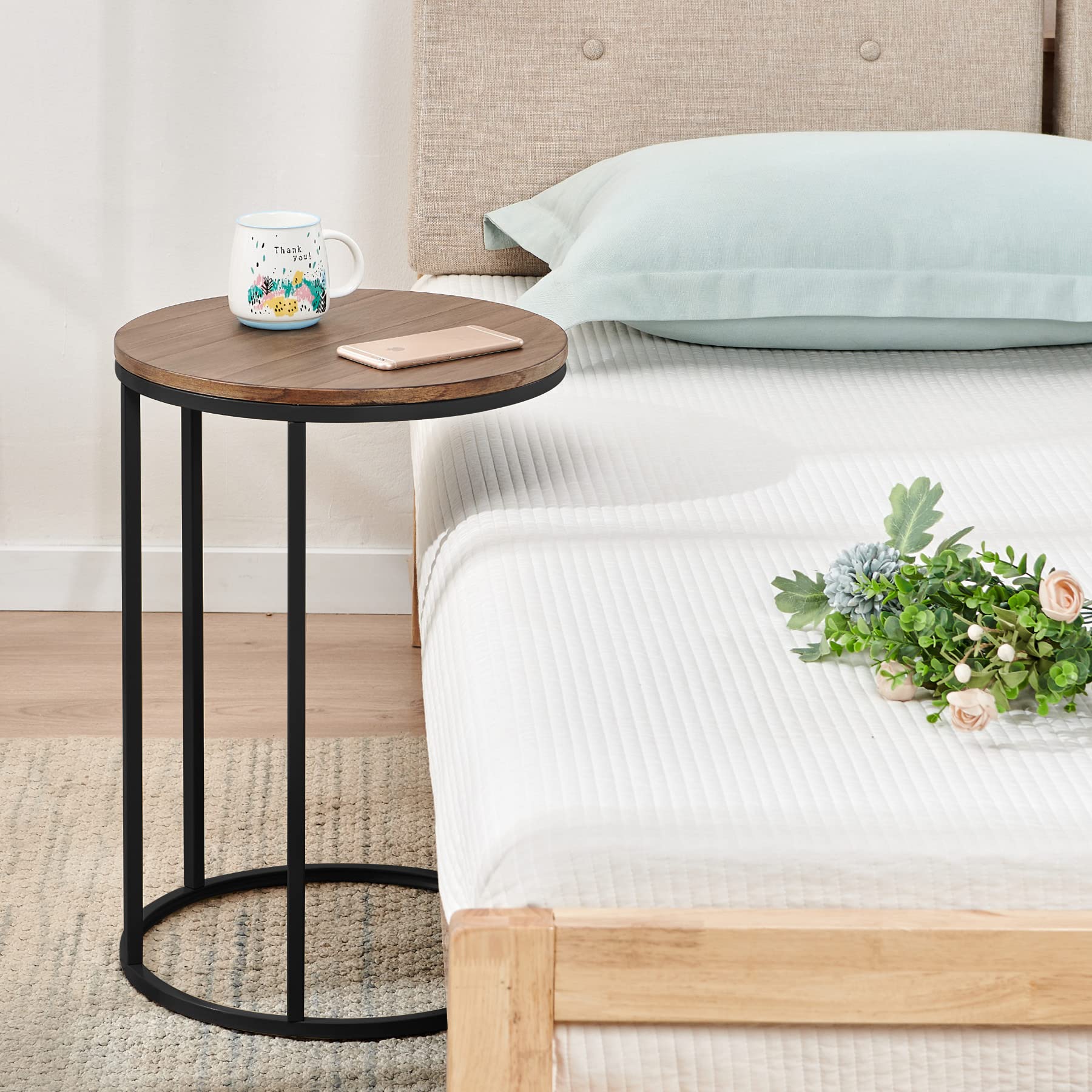 Modern-Glam Design: The sophisticated wooden top and metal frame make this side table modern and gorgeous. It easily fits into any decor in your office, living room or bedroom with its minimalistic, neutral design. | Small Spaces Solution: At 23.5 inches high, This table puts everything right at arm level when you’re sitting. This small size table makes it an ideal accessory for college dorm rooms, small apartments and studios, providing a lightweight, movable table surface for laptops and books. | Conveninet Use: Compact and low enough to be level with most chair/sofa arms. It creates a valuable handy space, very practical and fits perfectly in front of the arm rest to save walking space beside sofa. | Sturdy & Anti-Scratch: Constructed of a Sturdy metal base and a solid wooden top, this table was made for not only style but also, convenience. It's made to slide underneath a sofa or bed, so it's super useful as well as gorgeous | Ideal Life: This wooden finish side table is a perfect addition to your loving house. Use it as an end table or side table for a modern urban life. Have your favorite cup of coffee on it while catching up on a great book.