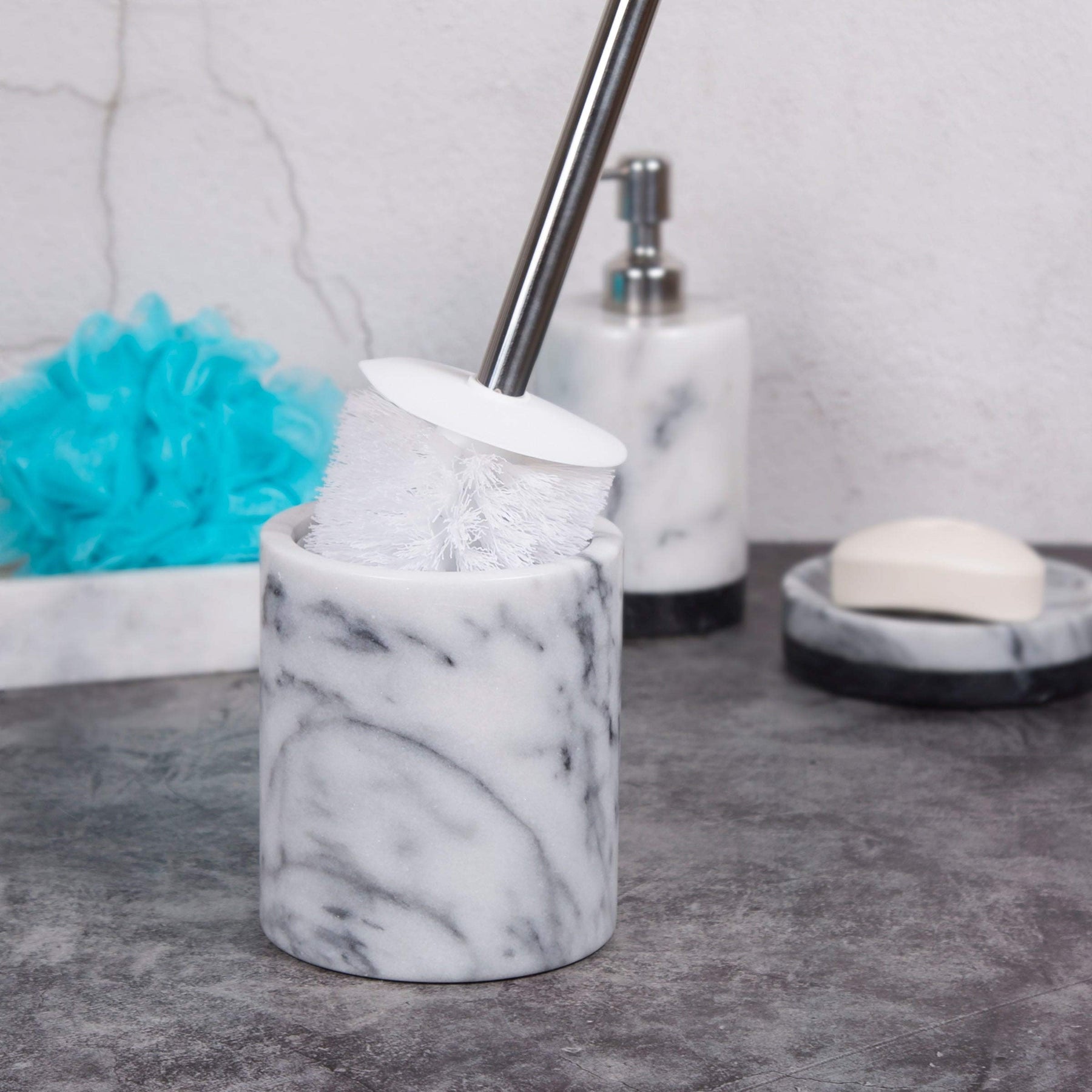 Natural arble Toilet Brush Holder Set with Silicone Cover Off/White