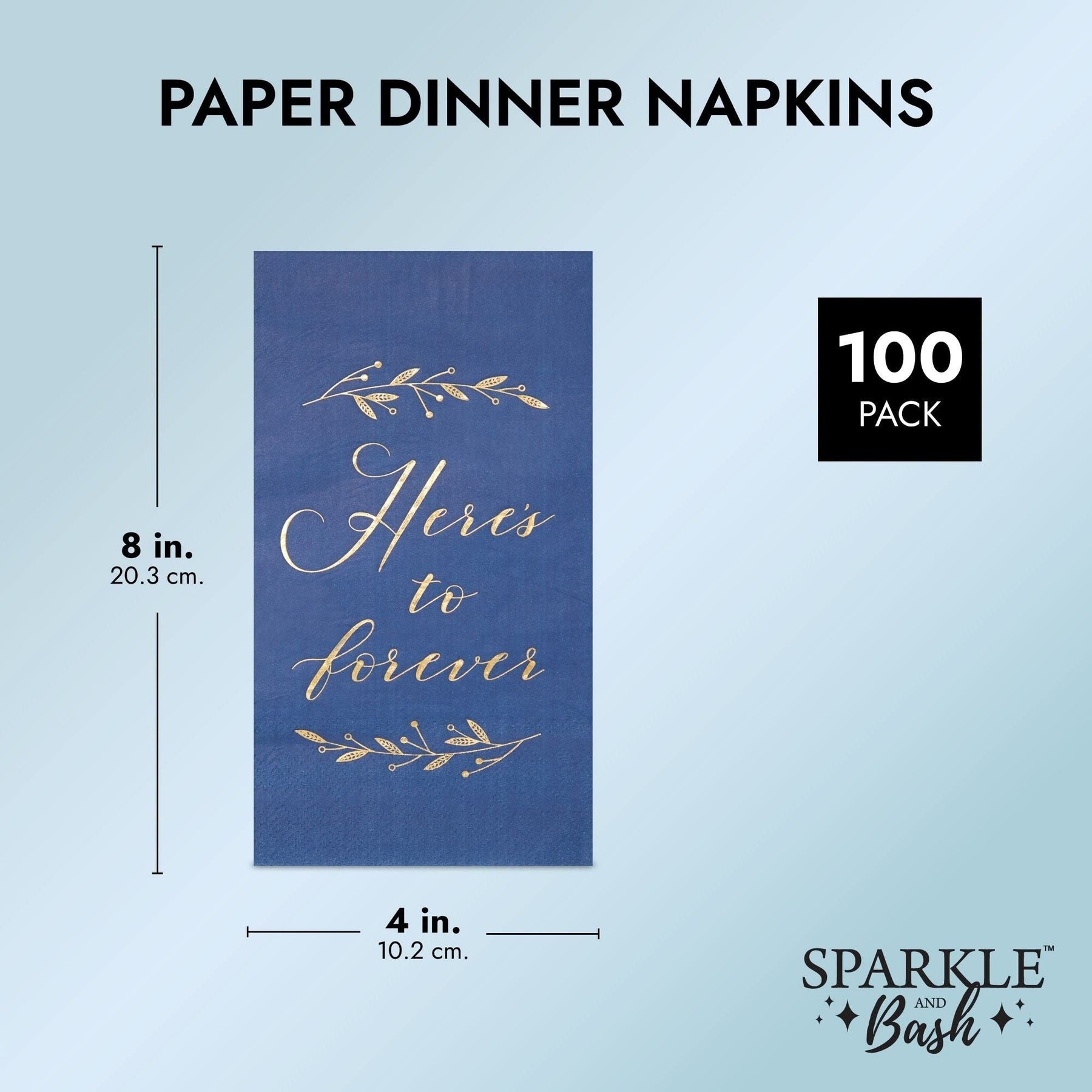Navy Blue Dinner Napkins for Wedding eception Here's to Forever