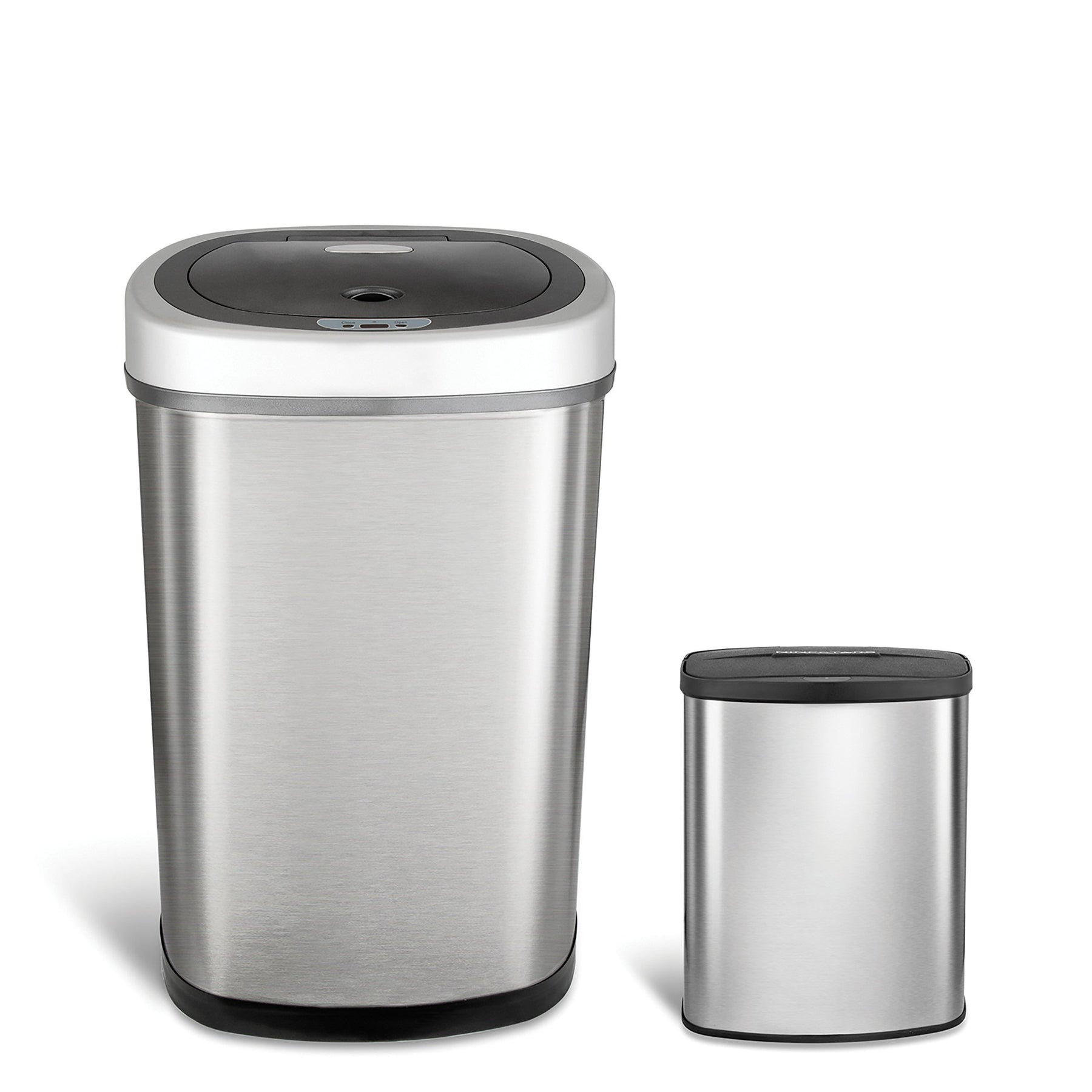 Ninestars AMZ-50-9/8-1 Automatic Touchless Motion Sensor Oval & Rectangular Trash Can Combo Set 13 gal/2 gal Stainless Steel