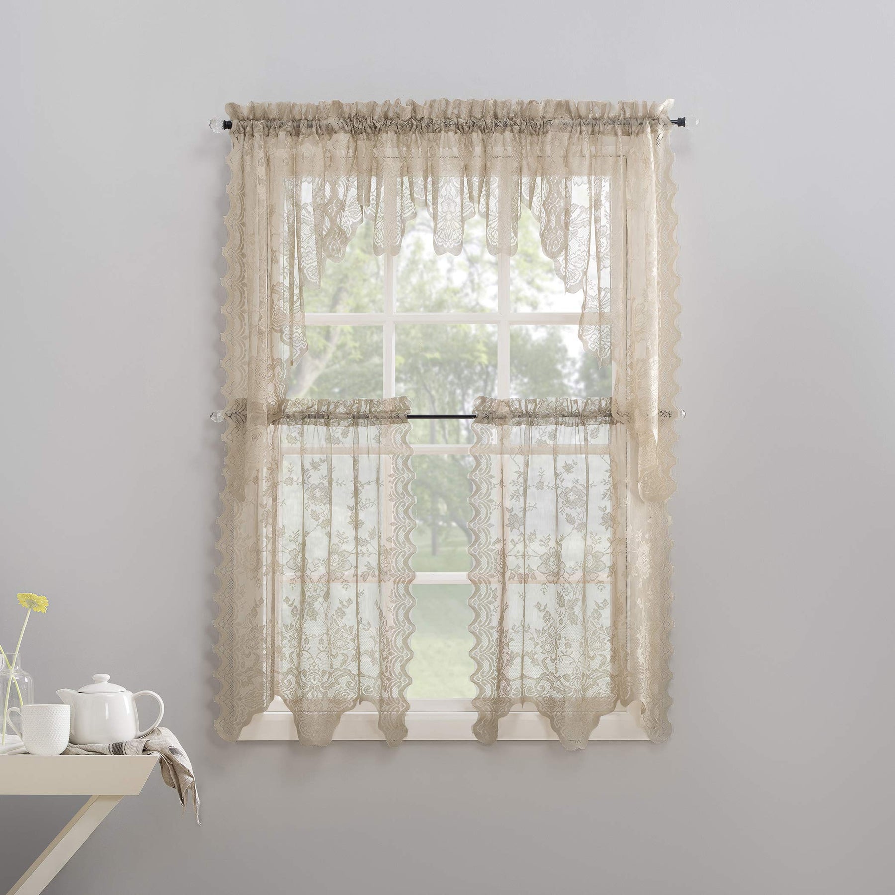 No. 918 Alison-Tr Floral Lace Sheer Rod Pocket Kitchen Curtain