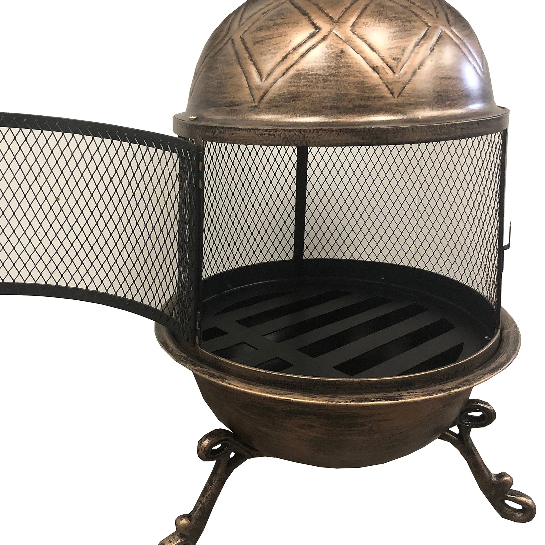 Keep party guests warm on chilly nights by adding this chimenea to your outdoor entertainment area. Featuring a striking textured design, this wrought iron chimenea includes screens and a door to prevent sparks from going astray.Type: WoodFuel Type: WoodMaterial: Iron, MetalAssembly: Assembly RequiredFinish: Goldtone FinishColor: Multi, Gold, BrownDimensions: 36 inches high x 15 inches wide x 15 inches longAssembly RequiredAssembly Required