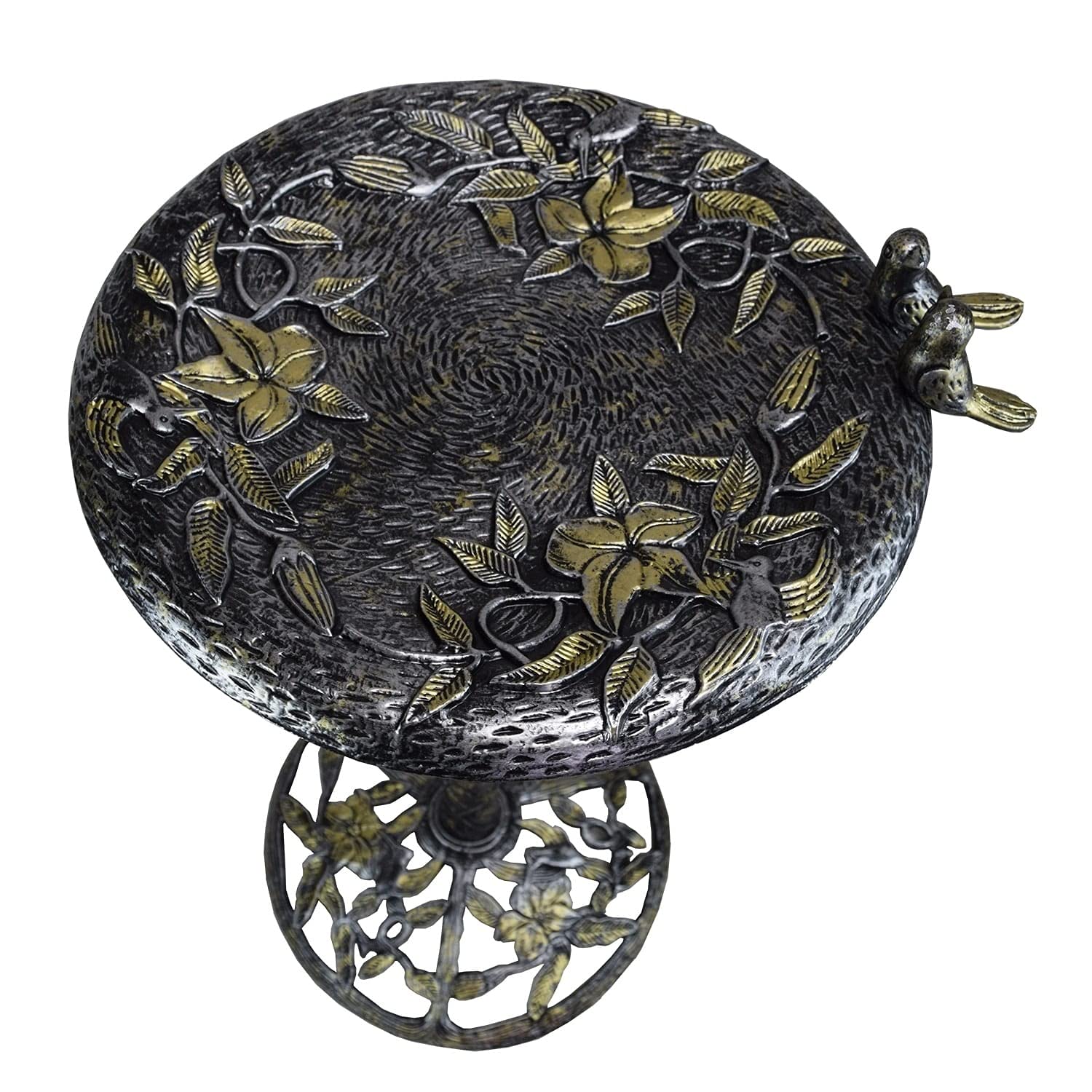 Our silver, black and gold cast aluminum hummingbird bird bath is perfect for any outdoor setting