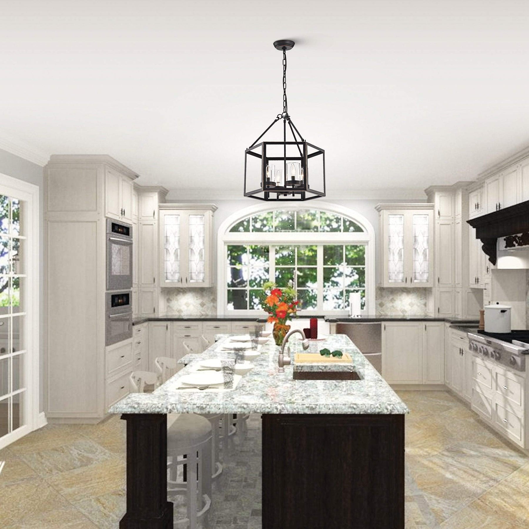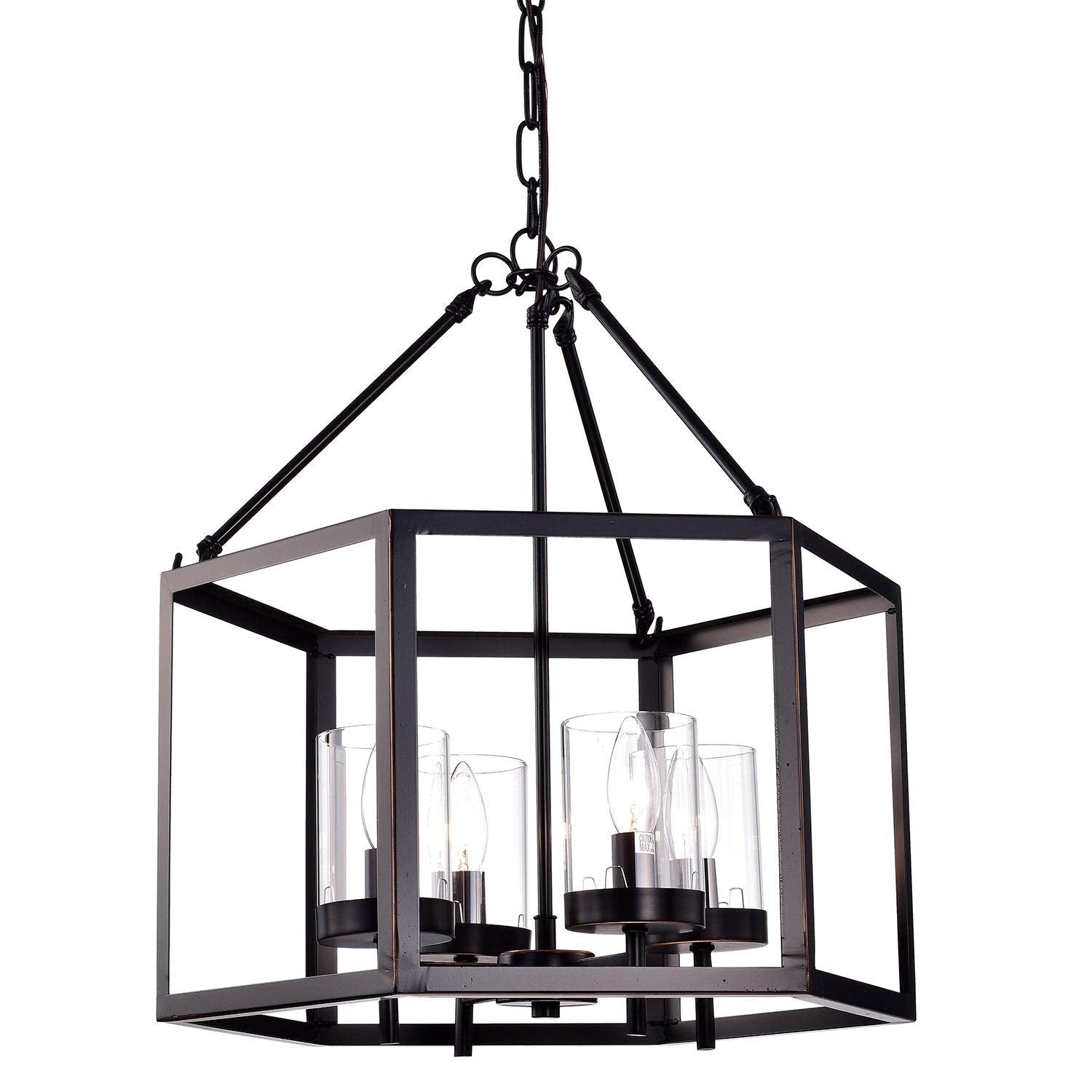 Oil Rubbed Bronze 4-light Hexagon Lantern Cage Chandelier Farmhouse Metal