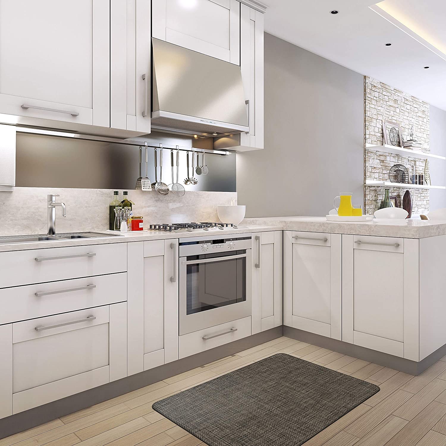 • Texture Anti Fatigue Mat Beige - 20" X 30" Ivory Solid Casual Modern Contemporary Transitional Rectangle Polyester Synthetic Latex Free Cushioned Non Slip Pet Friendly
