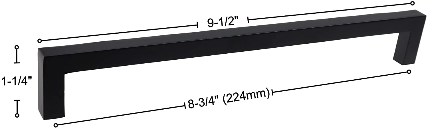 • 10-pack 8-3/4-inch Center Solid Square Bar Pull Black Modern Contemporary Metal Matte