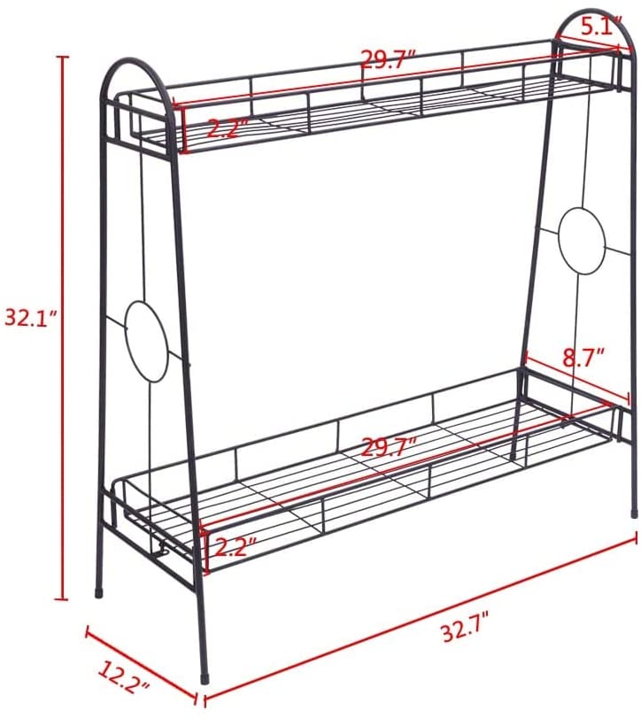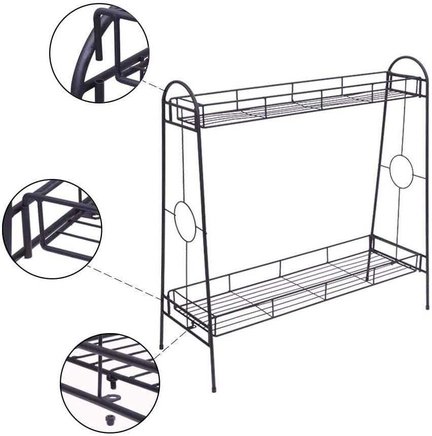 2 Layers Round Pattern Shelving Plant Stand Black Baking Paint