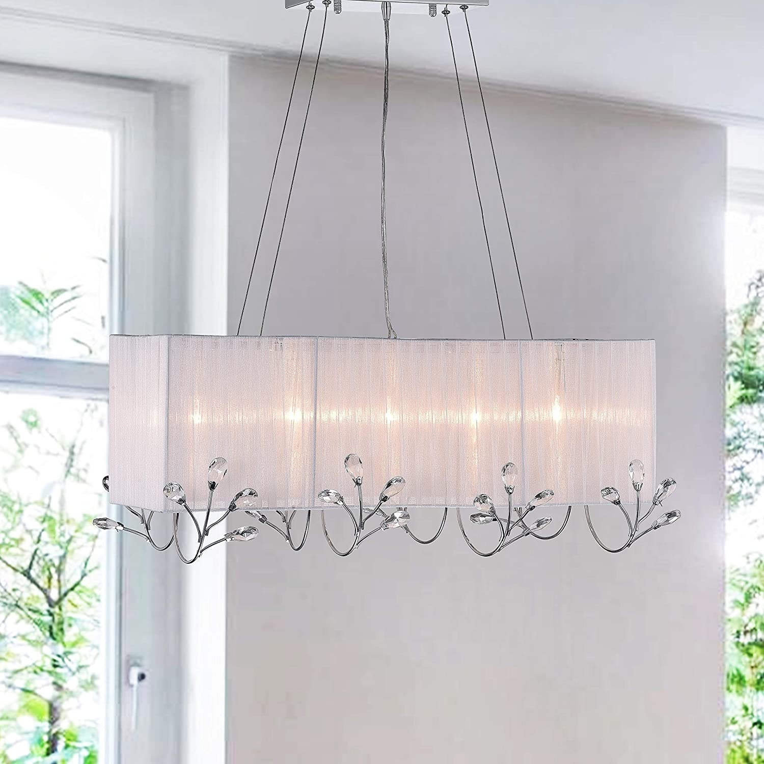 5 Light Rectangle Chandelier Modern Contemporary Glass Dimmable
