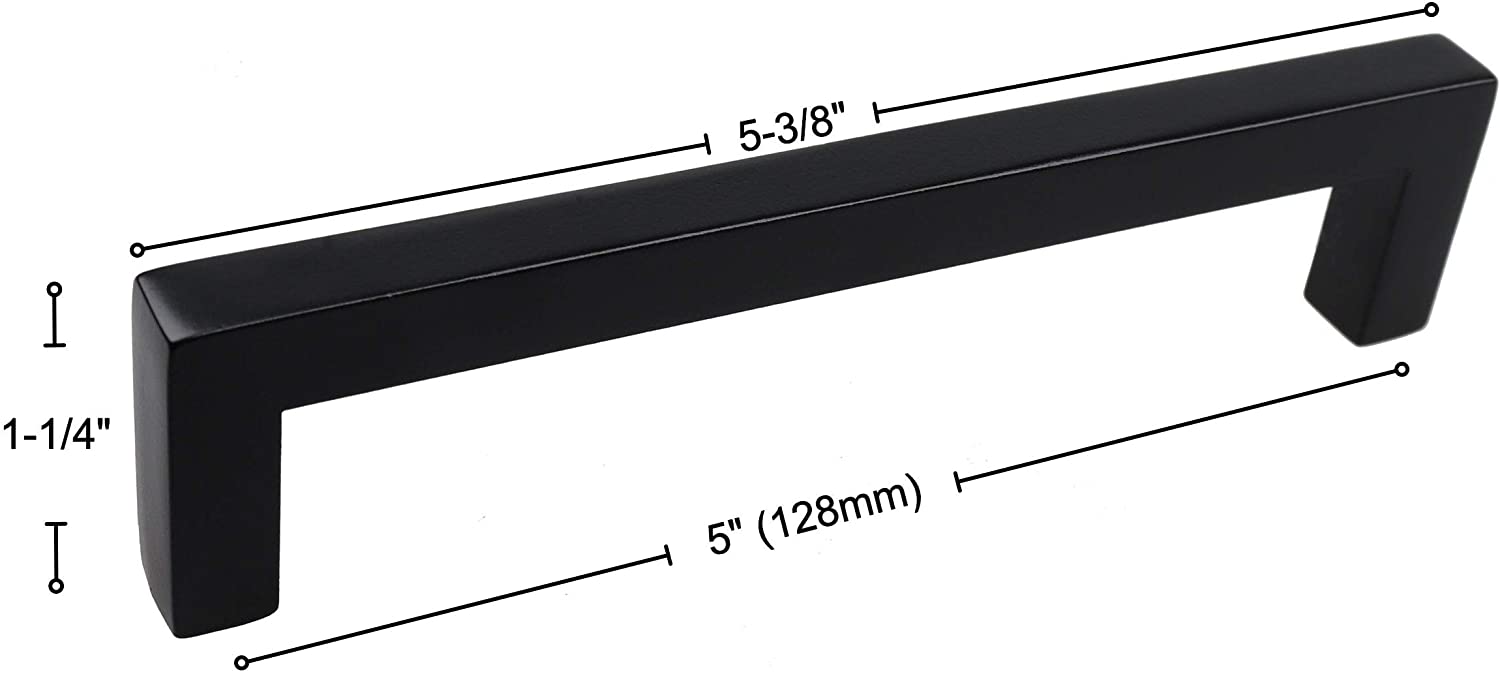 5 Pack 5 inch Center Solid Square Bar Pull Black