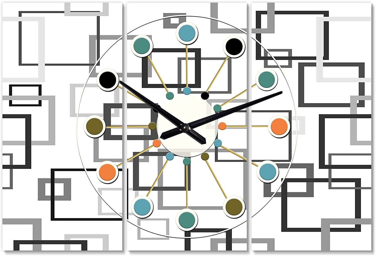 Abstract Retro Design Ii' Oversized Mid Century Wall Clock 3 Panels 36 Wide X 28 High Grey Mid Century Modern Contemporary Rectangular Steel - Diamond Home USA