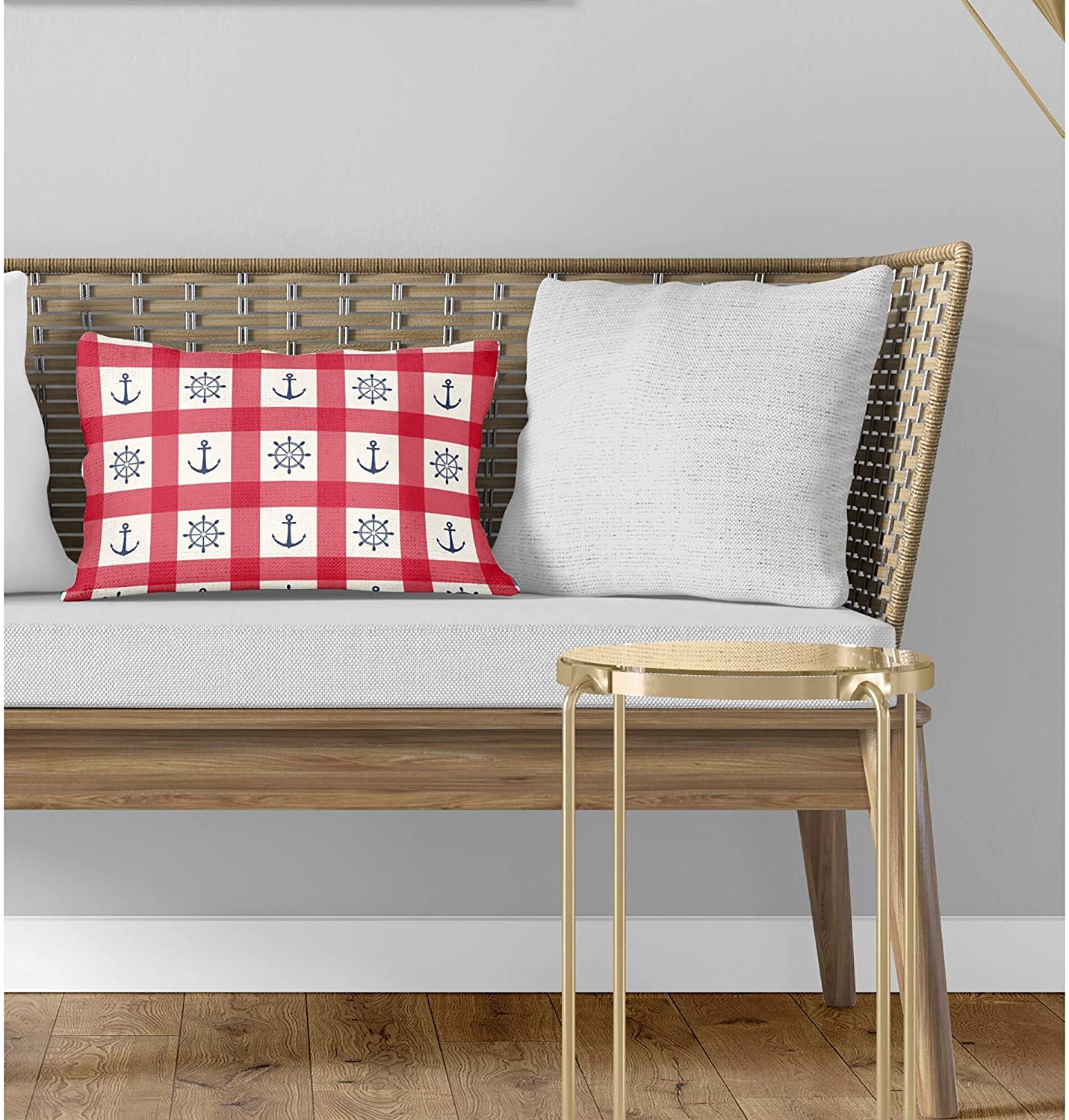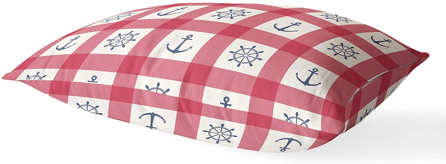 Anchor Red Blue Lumbar Pillow Red Geometric Nautical Coastal Polyester
