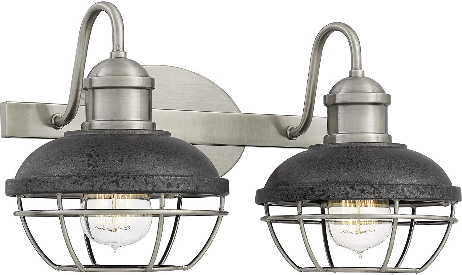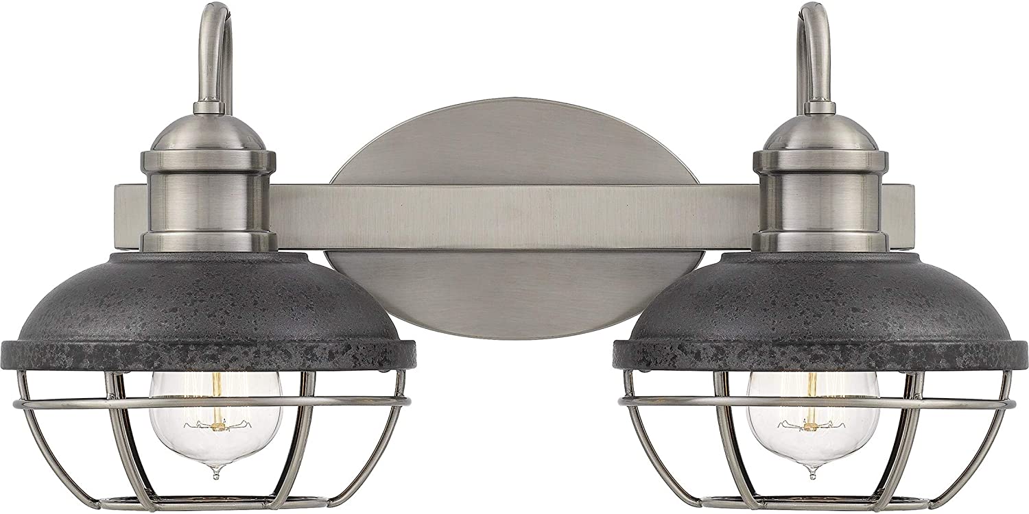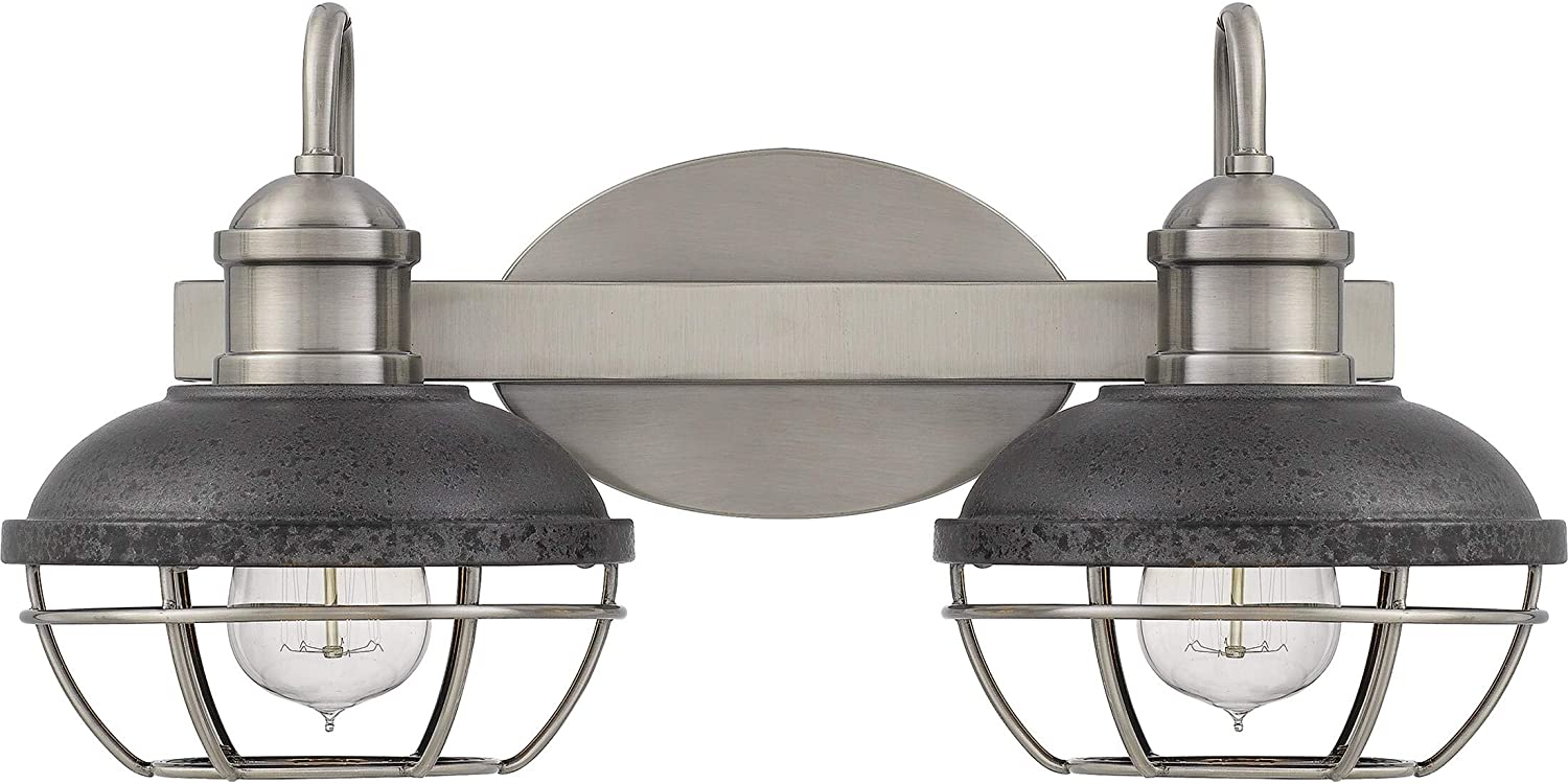 Antique Polished Nickel 2 Light Bath Light Black Silver Industrial