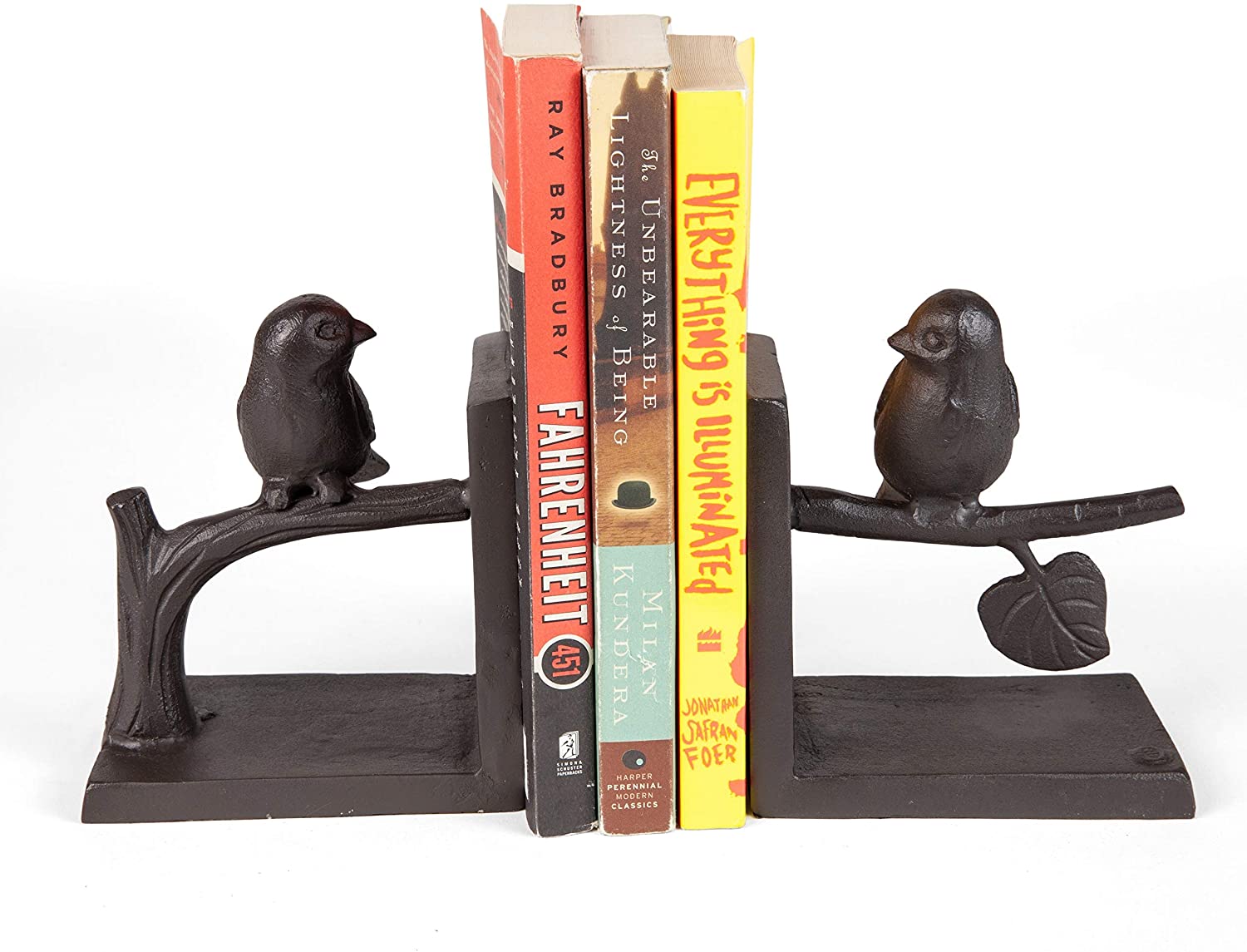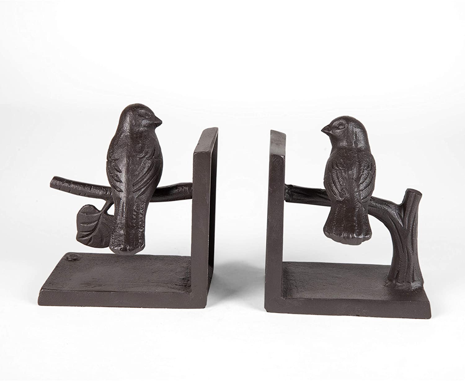 Birds Branch Cast Iron Bookend Set Brown Matte Handmade
