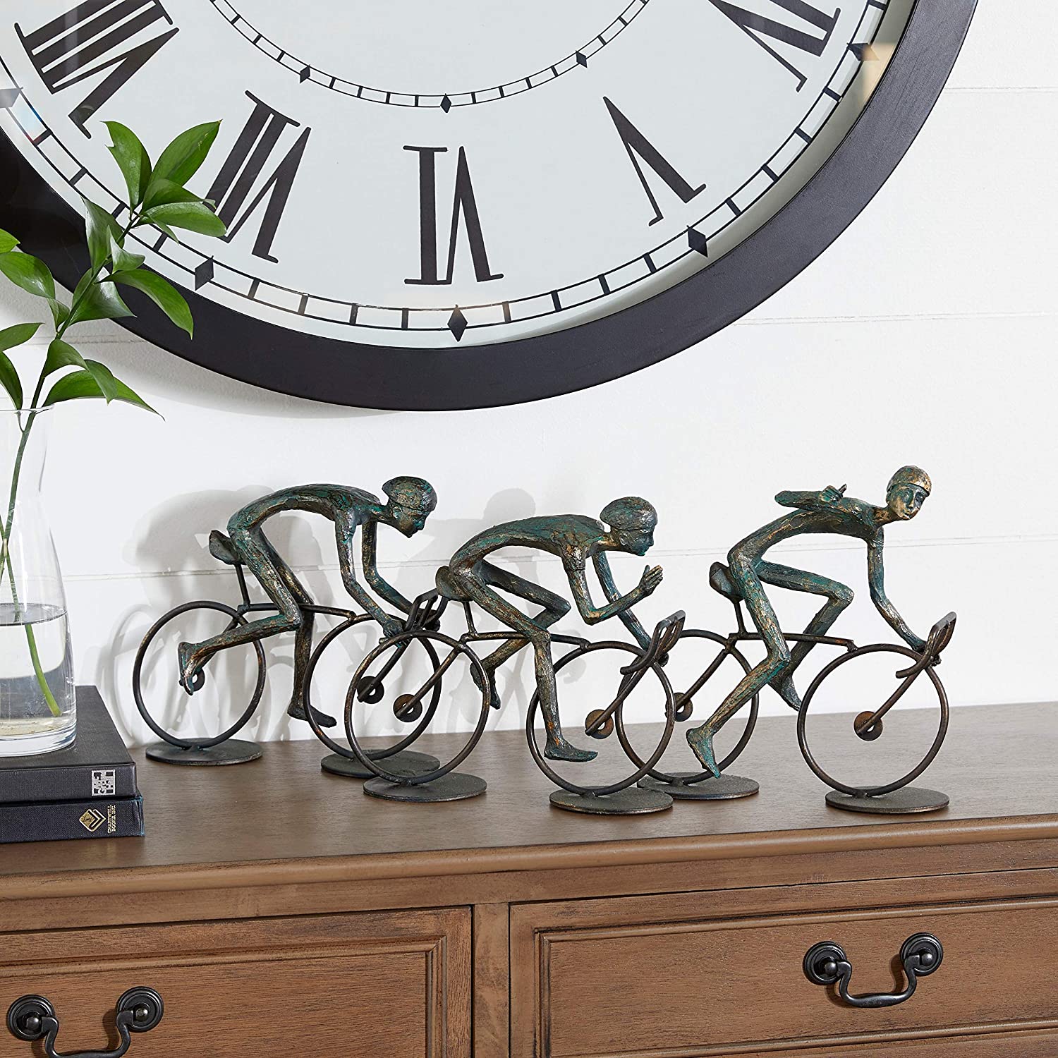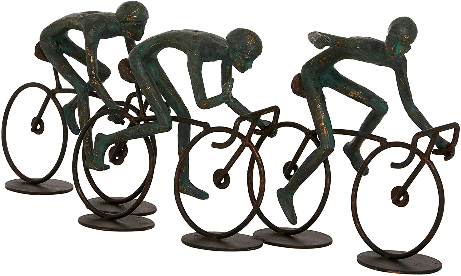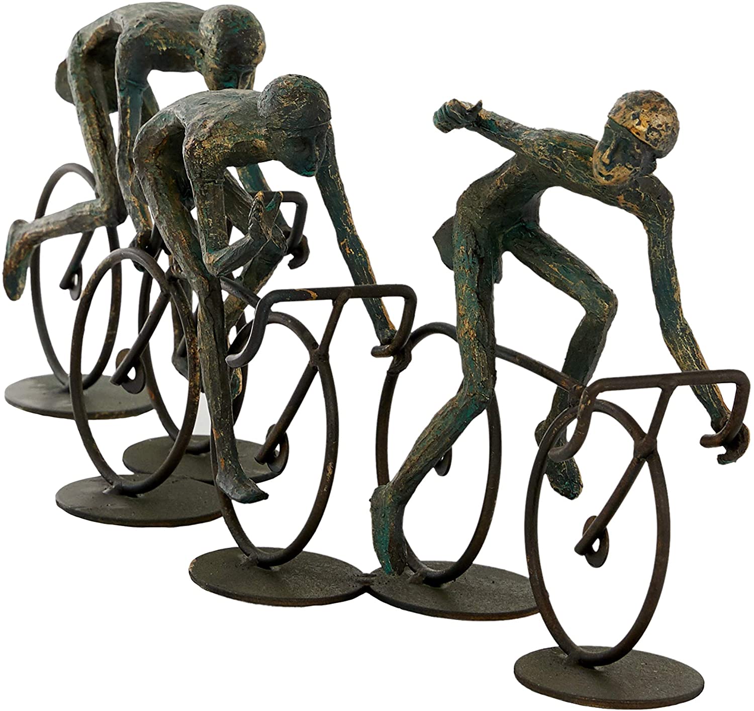 Distressed Bronze Finished Polystone Cyclist Sculpture 21" X 9" 20