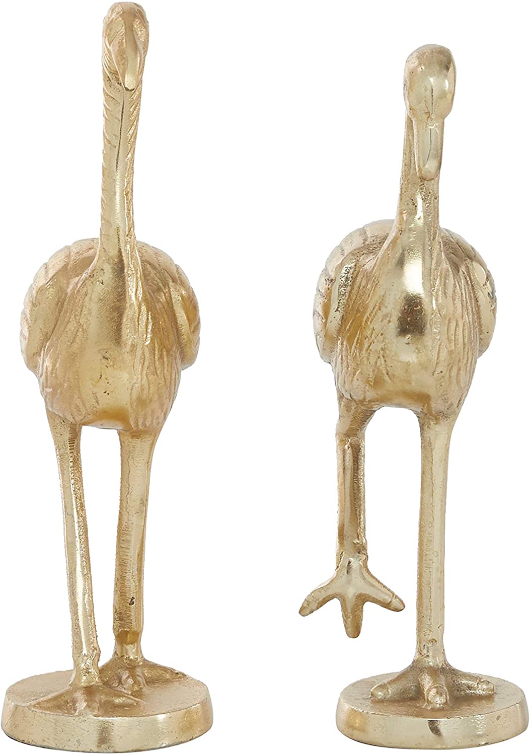 Gold Metal Flamingo Sculptures Round Base Set 2 5 X