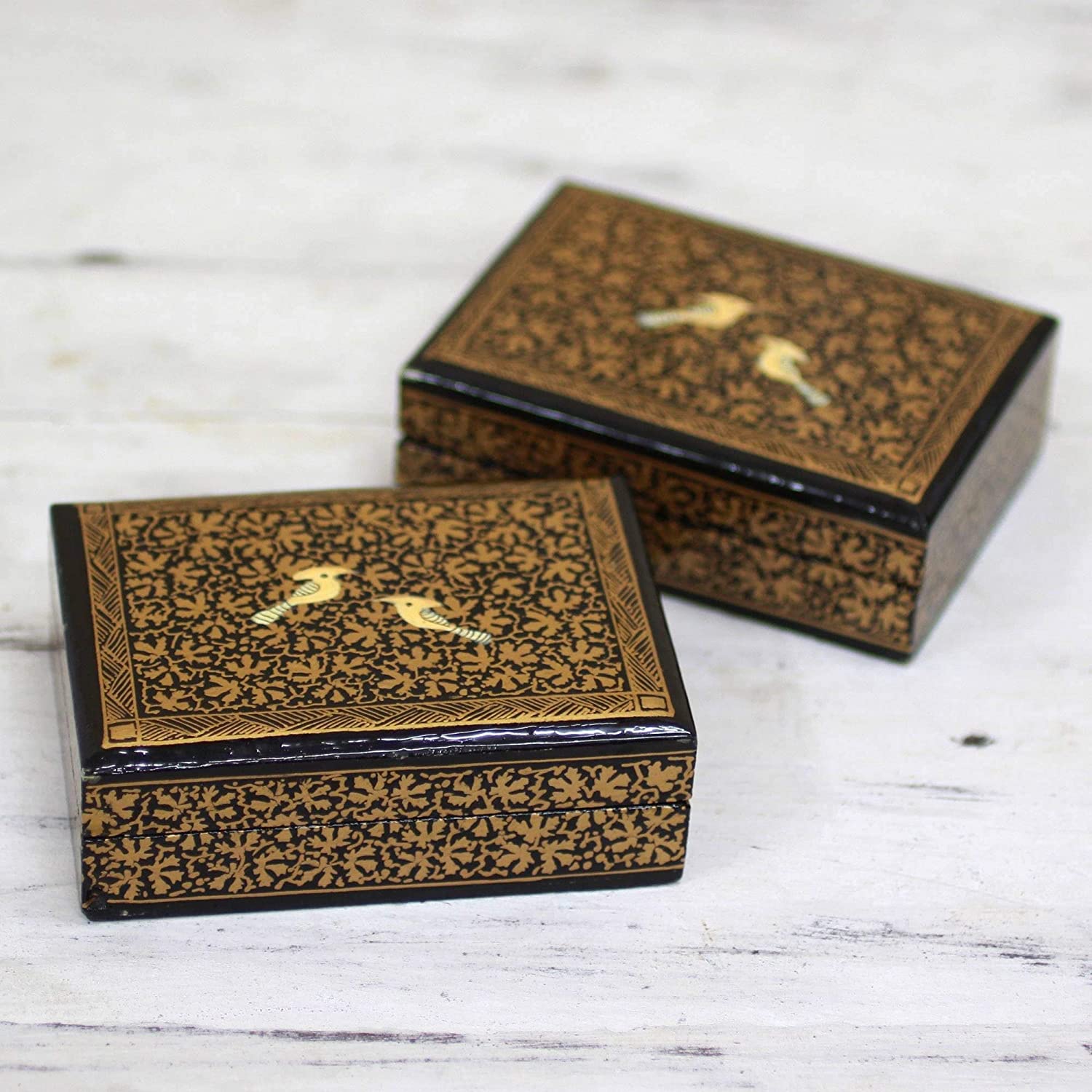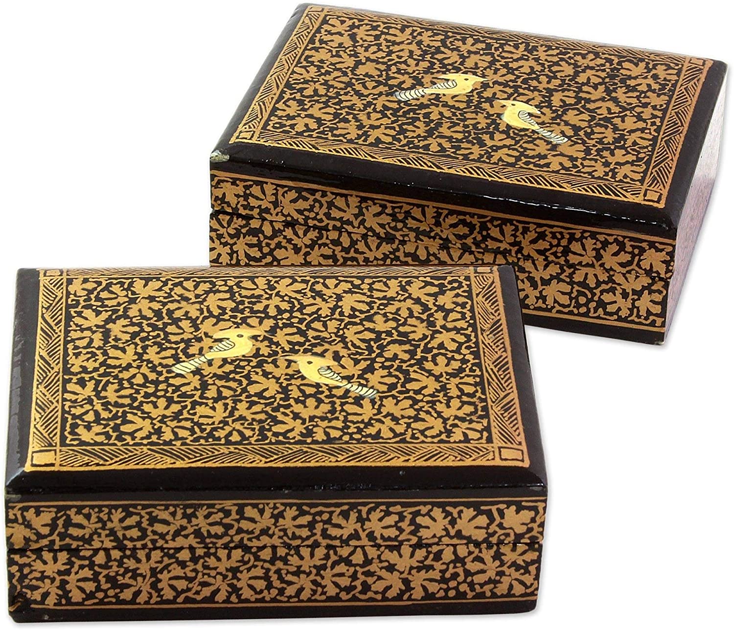 Handmade Whispers Gold Wood Decorative Mini Boxes (Pair) India 1