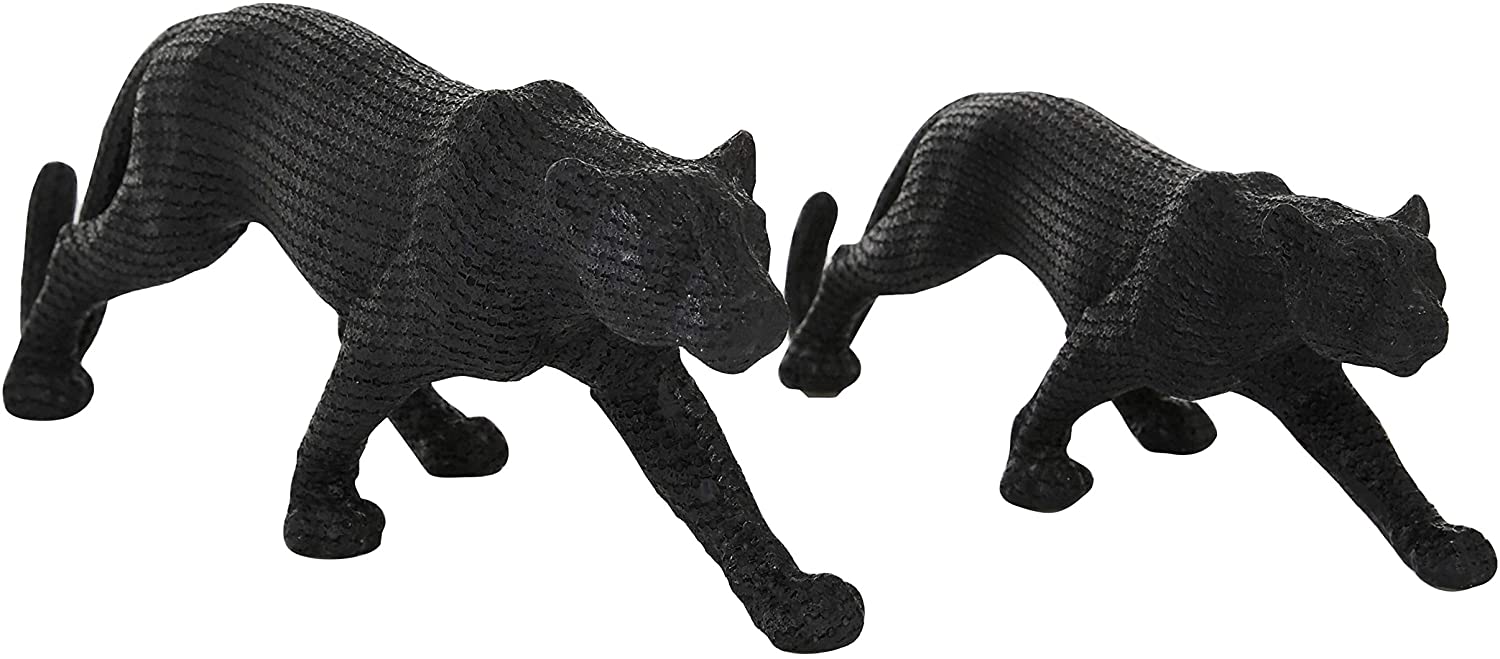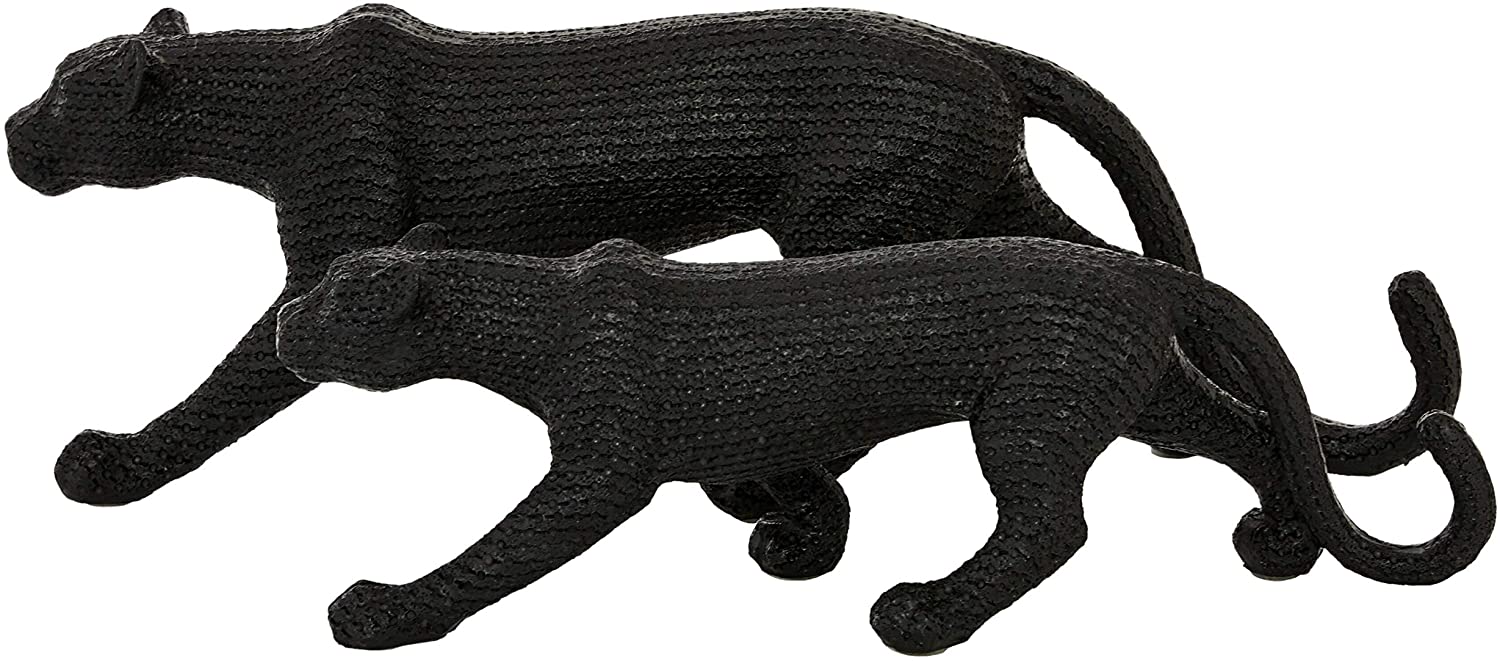 Large Black Jaguar Sculptures Set 2 18 X 4 6 Resin - Diamond Home USA