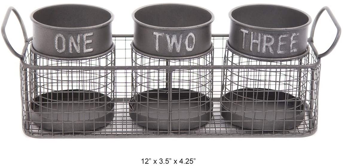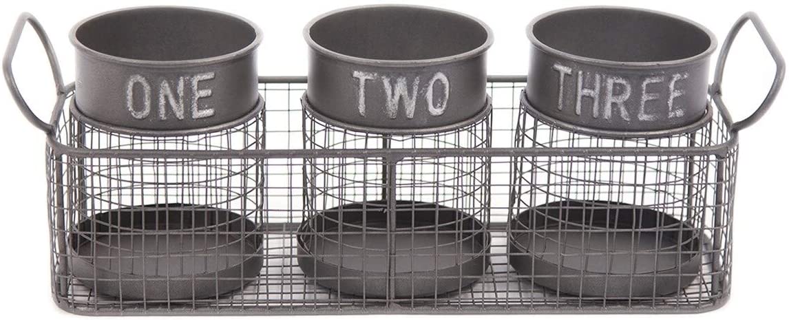 Metal Pencil Holder 3 Compartment Desktop Organizer Grey Industrial